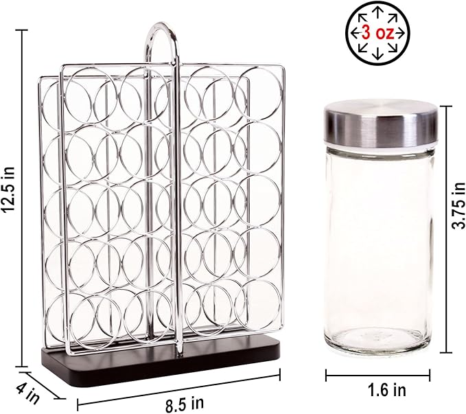 - Versatile Design: Accommodates majority spice jars. Filled with premium spices. Free spice refills for 5 years, S/H payable - US continental customers only.