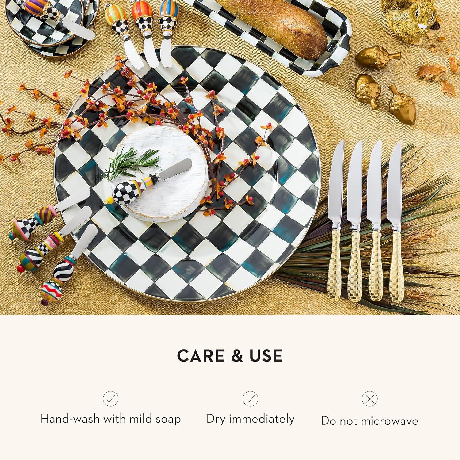 MACKENZIE-CHILDS Enamel Serving Platter, Decorative Serving Platter for Food, 16 Inches, Black-and-White Courtly Check