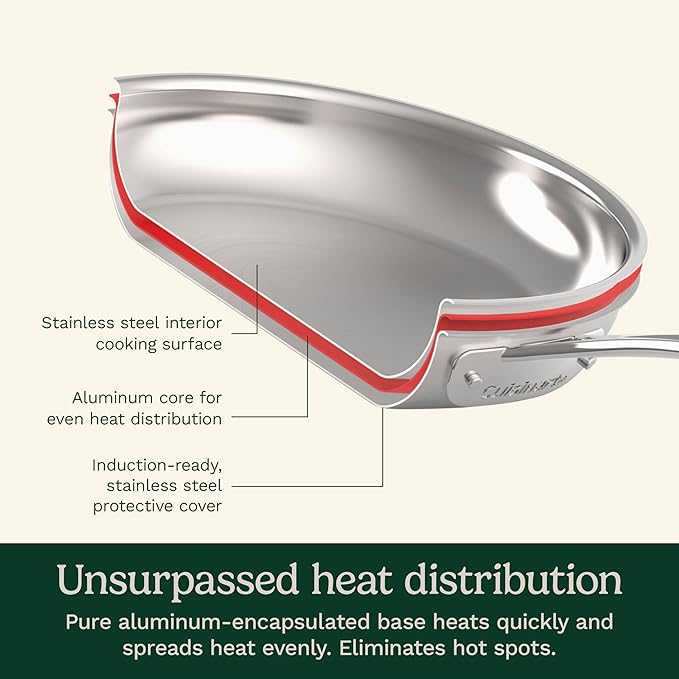 - COOKING AND CLEANING: Experience professional performance with an aluminum encapsulated base that heats quickly and spreads heat evenly, eliminating any hot spots and providing versatile performance. The stainless steel cooking surface does not discolor, react with food or alter flavors. Dishwasher safe, making cleanup effortless