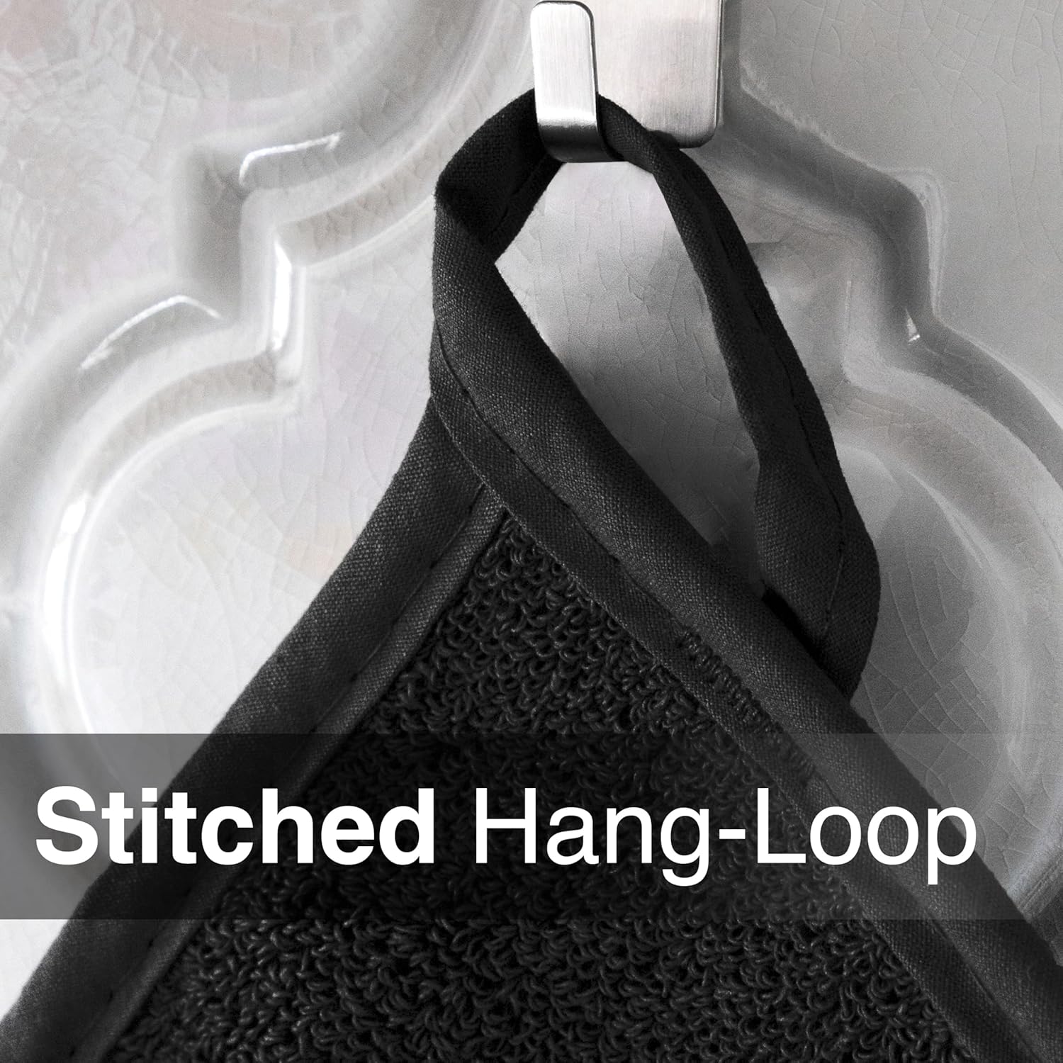 - CONVENIENT HANG LOOP. We know that a busy kitchen requires tools that are always within reach. That's why each pocket mitt comes complete with a handy hanging loop. Hang them by your oven or kitchen island, and you'll always have your trusty mitts right where you need them.