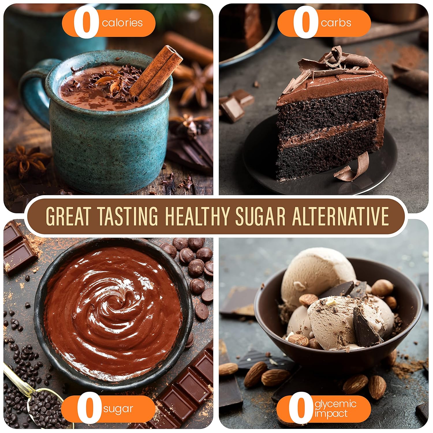 - β€οΈPERFECT FOR ALL DIET PLANS - 0 glycemic index, 0 calories, 0 carbs, 0 fat, 0 sugar, & no impact on blood sugar level means even with the keto diet our liquid no calorie stevia is safe. Enjoy yummy Keto liquid sugar with dark chocolate flavor that you can use as a healthy sugar substitute, keto sweetener & more!