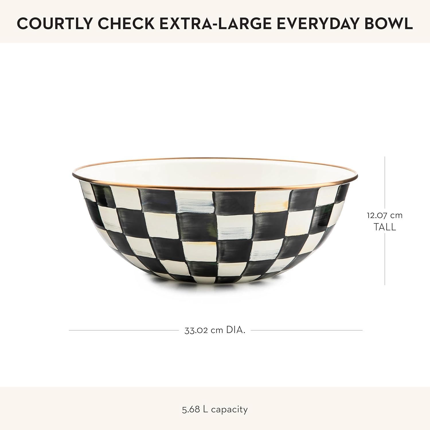 - ELEGANT ESSENTIAL: Elevate any meal with this decorative bowl. It has a hand-glazed heavy-gauge steel underbody and a bronzed stainless-steel rim and is decorated with hand-painted black-and-white checks.