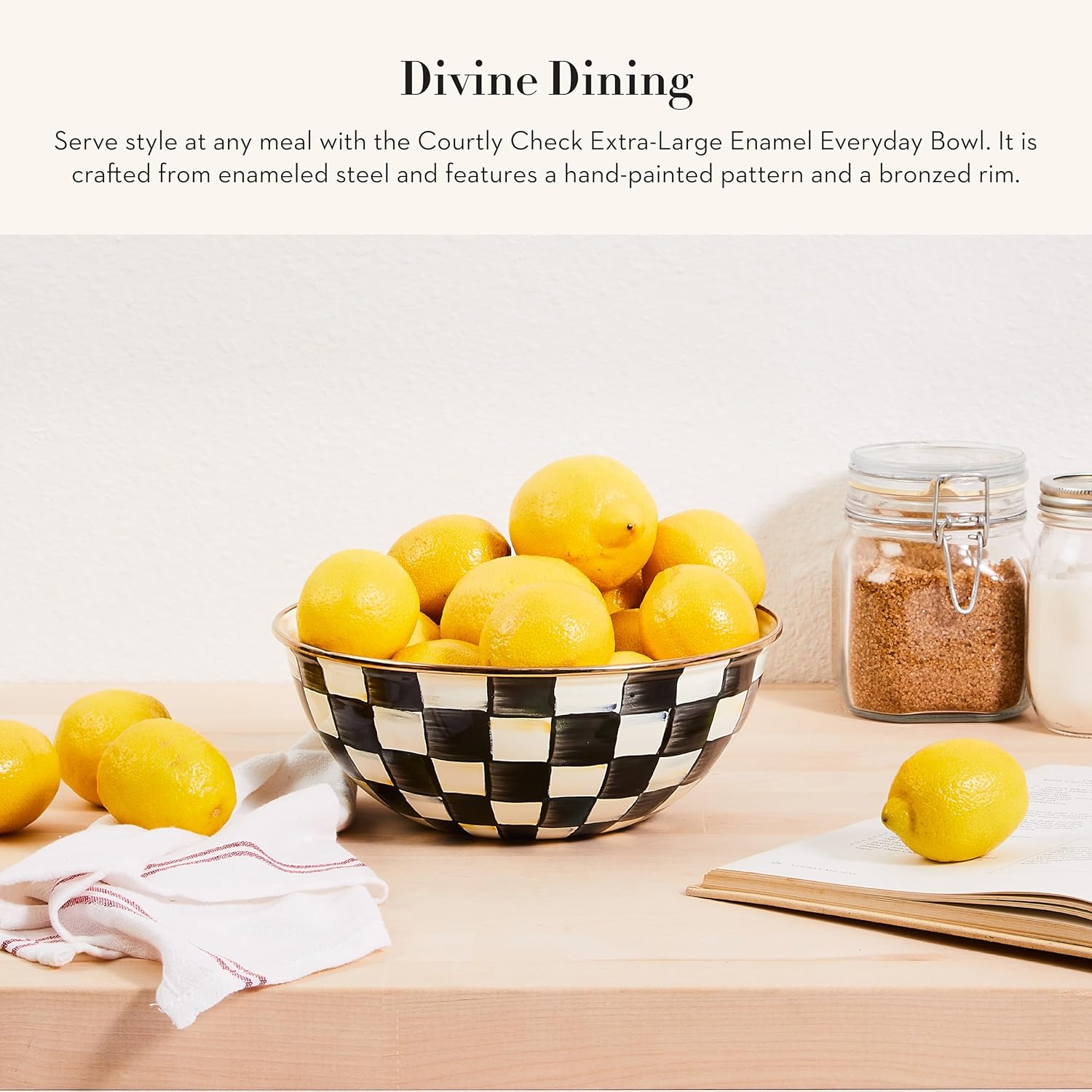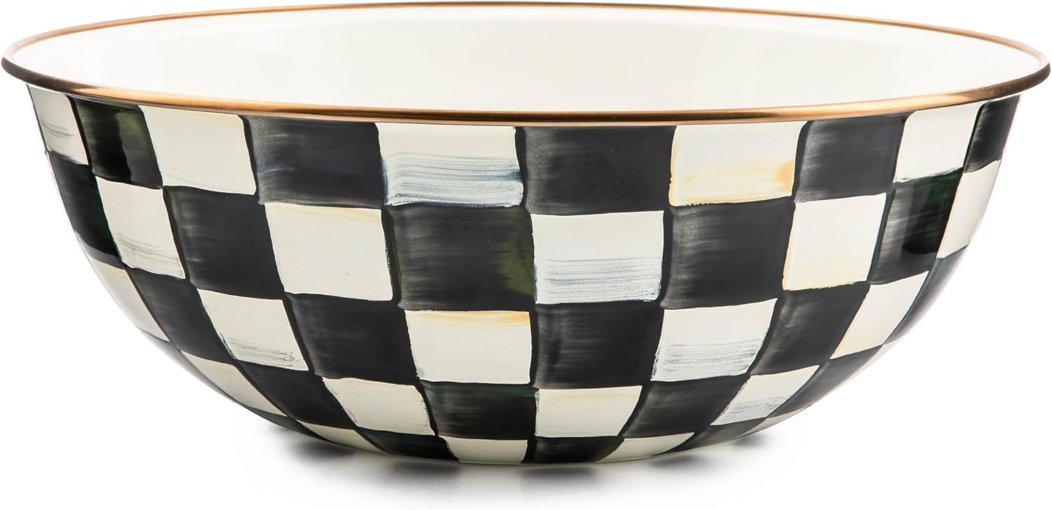 MACKENZIE-CHILDS Enamel Everyday Bowl, Serving Bowl for Entertaining, Extra-Large, Black-and-White Courtly Check, Set of 1