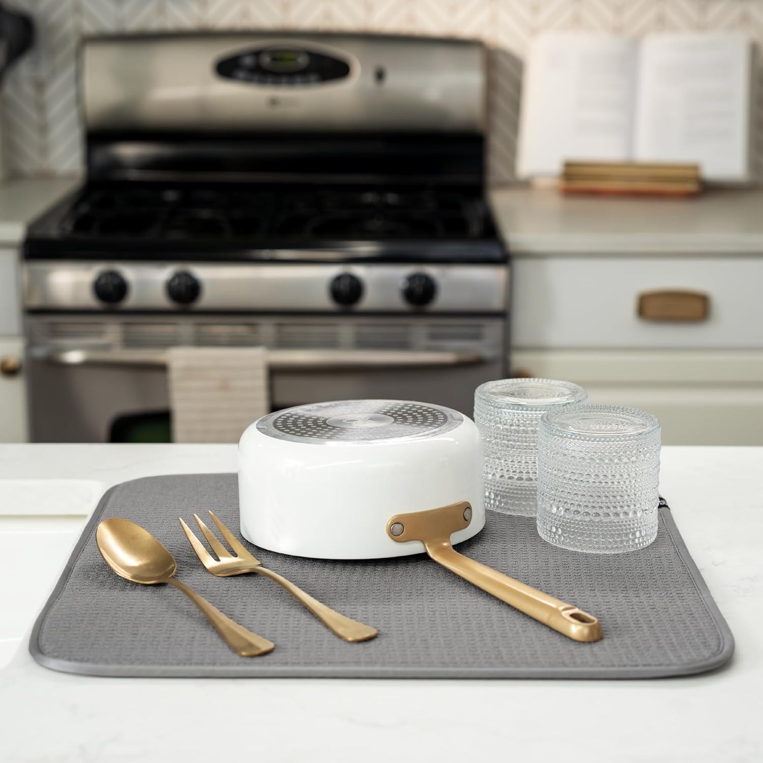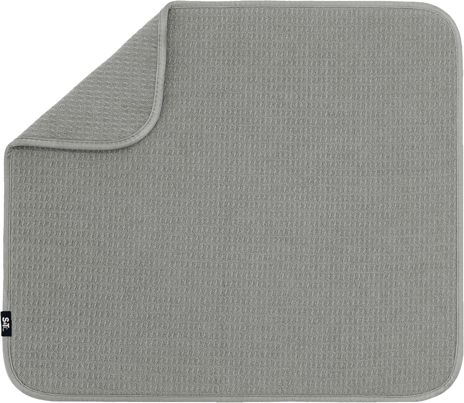 S&T INC. Dish Drying Mat, 16” x 18”, Absorbent Microfiber Kitchen Counter Mat, Dish Drying Pad for Dishes, Utensils, Pots and Pans, Large, Grey