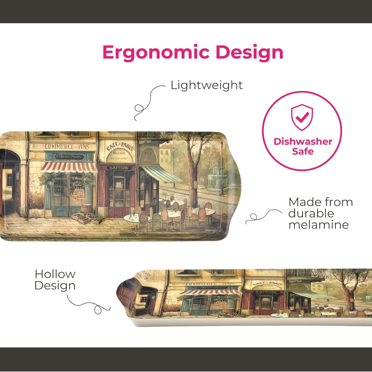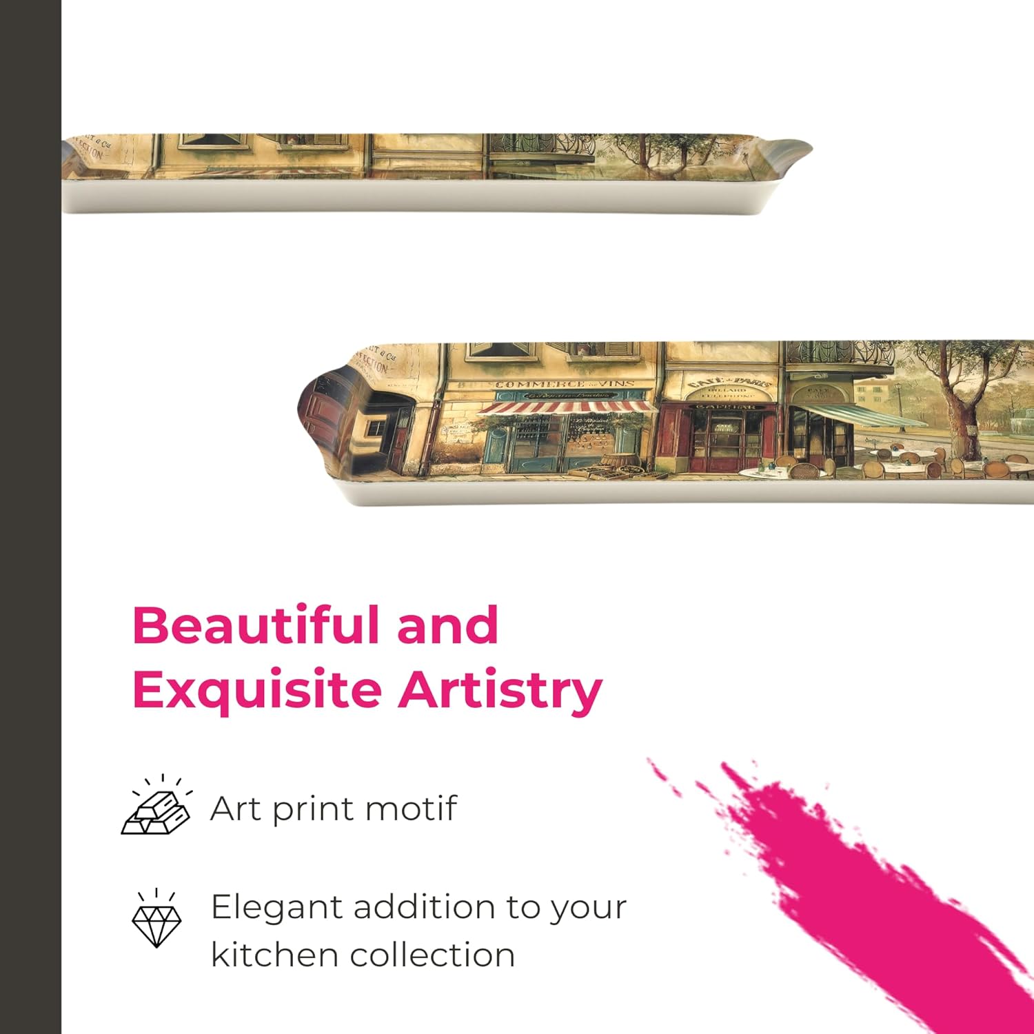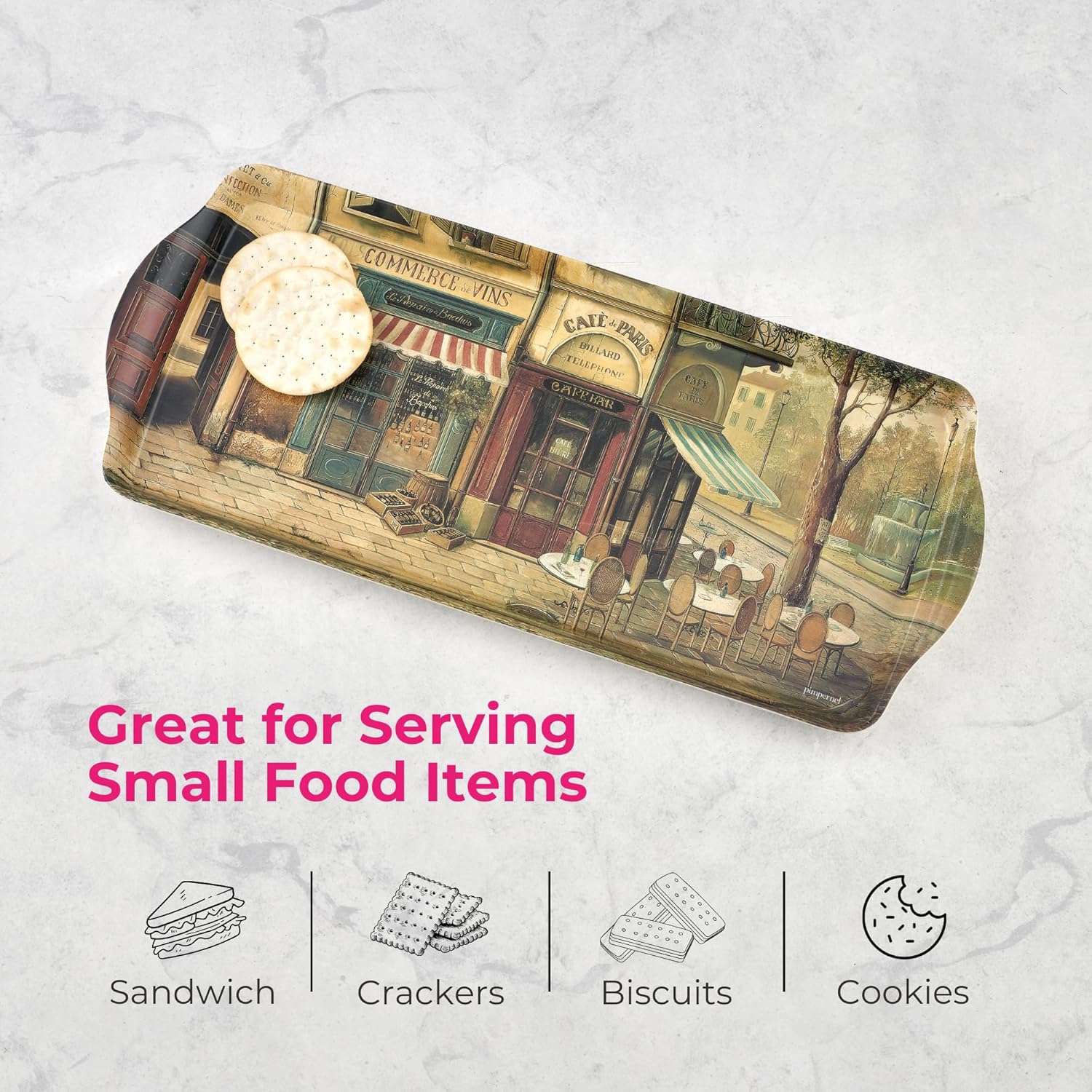Pimpernel Parisian Scenes Rectangular Hostess Tray - 15.1" x 6.5" Melamine Snack Platter with French Street Illustration - Dishwasher-Safe Decorative Kitchen Accent for Serving