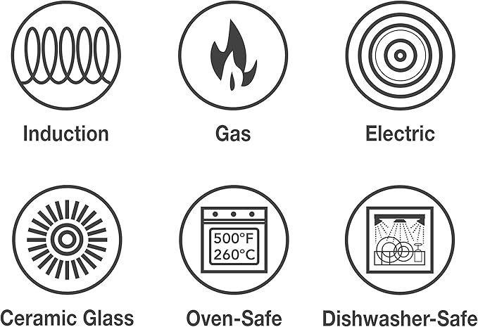 - Cooktop Compatibility: Works with all stovetops, including induction, gas, electric, and ceramic glass