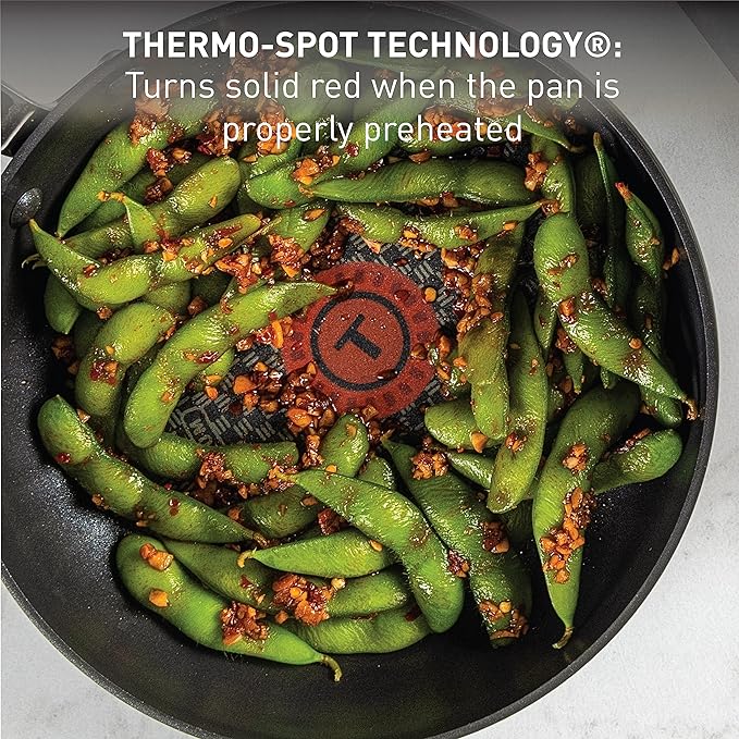 - Thermo-Spot Technology: Our frying pans nonstick set has a unique heat indicator that turns solid red when pans are properly preheated; so you'll know exactly when to start cooking for perfect results every time
