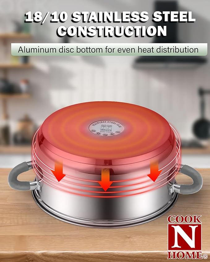 - Excellent Heat Distribution: The stainless steel pots and pans set is made of mirror-polished 18/10 stainless steel with an aluminum disc bottom for even and quick heat distribution, preventing hot spots