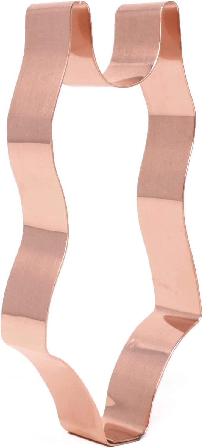 - Bathing Suit Shape: 4.75” x 2.25” handcrafted copper cutter forms detailed swimsuit cookies for beach-themed events