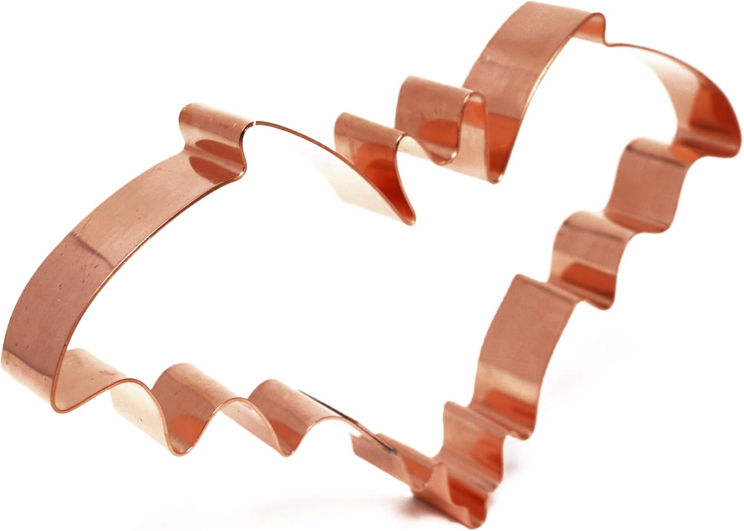 - Bat Cookie Cutter: 6” x 3.5” handcrafted copper forms bold bat cookies for Halloween festivities