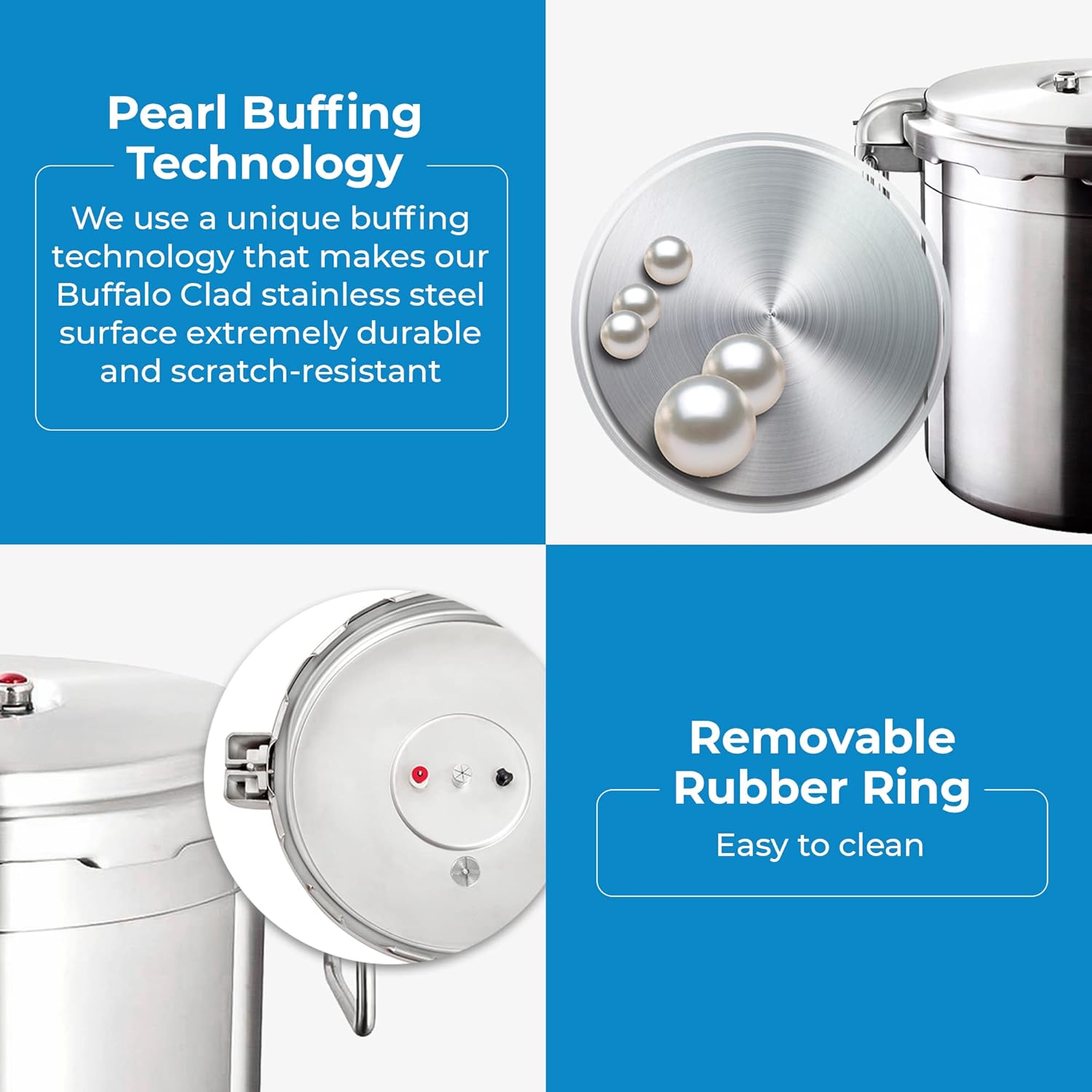 Buffalo 32 Quart Stainless Steel Pressure Cooker Large Canning Pot with Lid for Commercial Use - Easy to Clean Stove Top Pressure Canner, Can Cooker - Safety Goods Certificate QP430
