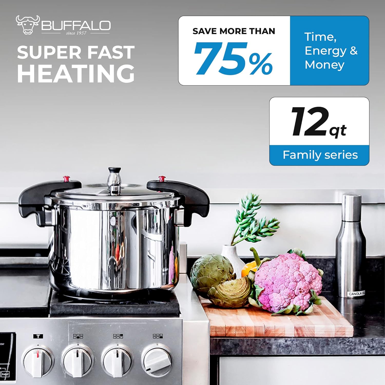 - Exclusively made from BUFFALO Clad, its thermal conductivity is faster and more even than conventional stainless steel cookware
