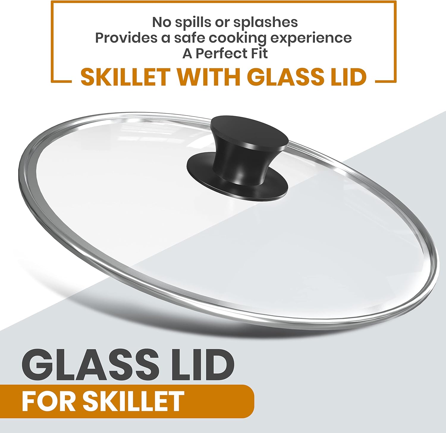 Utopia Kitchen Saute Frying Pan 12 Inch, Cast Iron Chefs Pan, Pre Seasoned Cast iron Skillet With Lid, Safe Grill Cookware for Indoor & Outdoor Use, Black