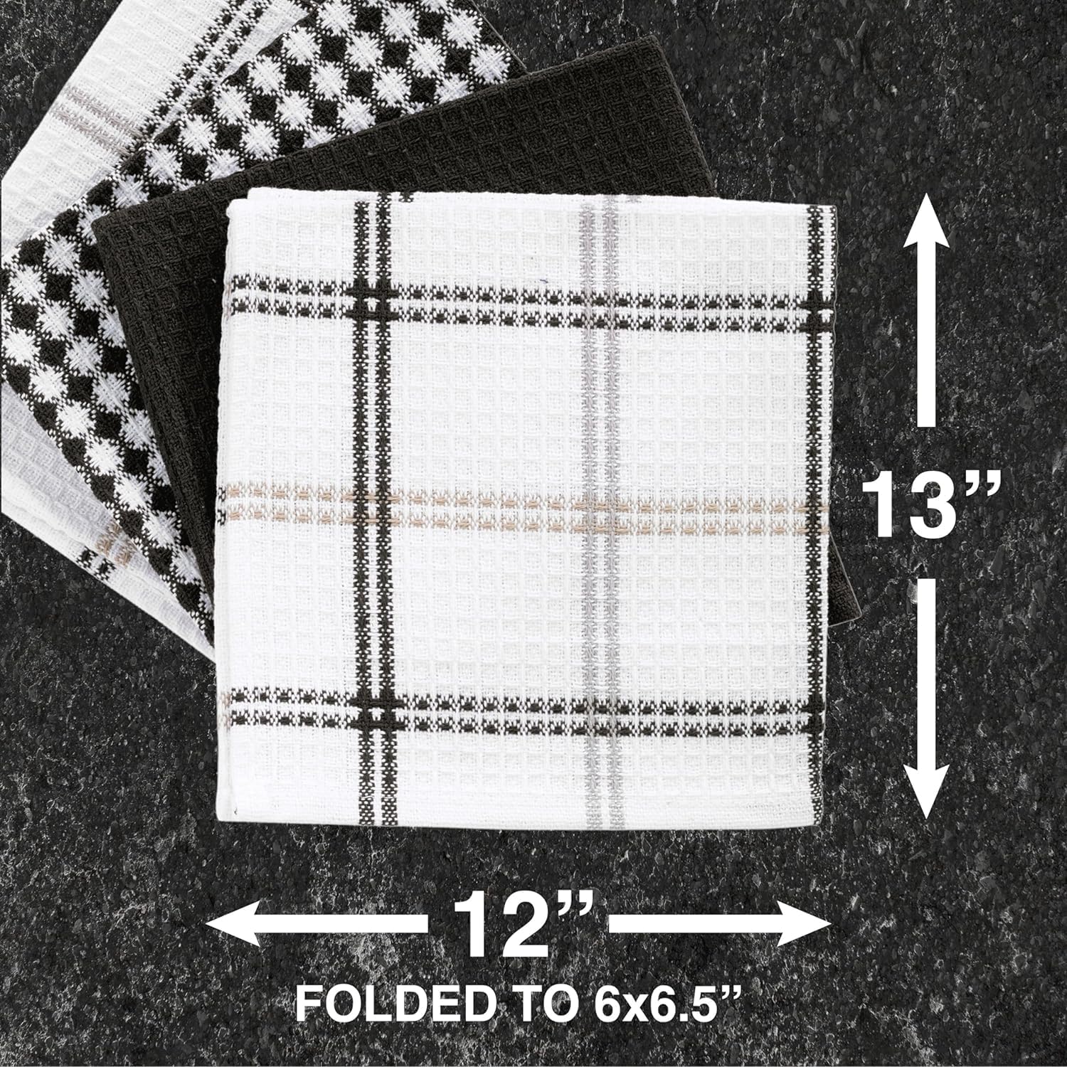 T-FAL Premium Waffle Dish Cloths: Highly Absorbent, Super Soft Long Lasting - 100% Cotton, 12"x13" Flat Waffle Dish Towel for Cleaning & Drying Dishes, (4-Pack), Neutral