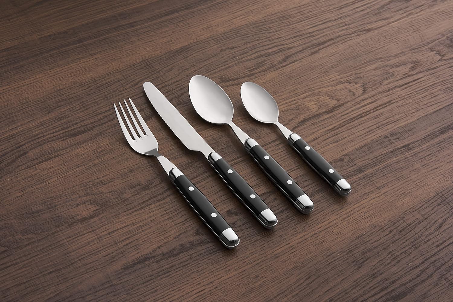 - WHAT IT’S MADE OUT OF: The Cambridge Jubilee Black 16-piece flatware set is made of high-quality 18/0 stainless steel for everyday durability and rust-resistance.