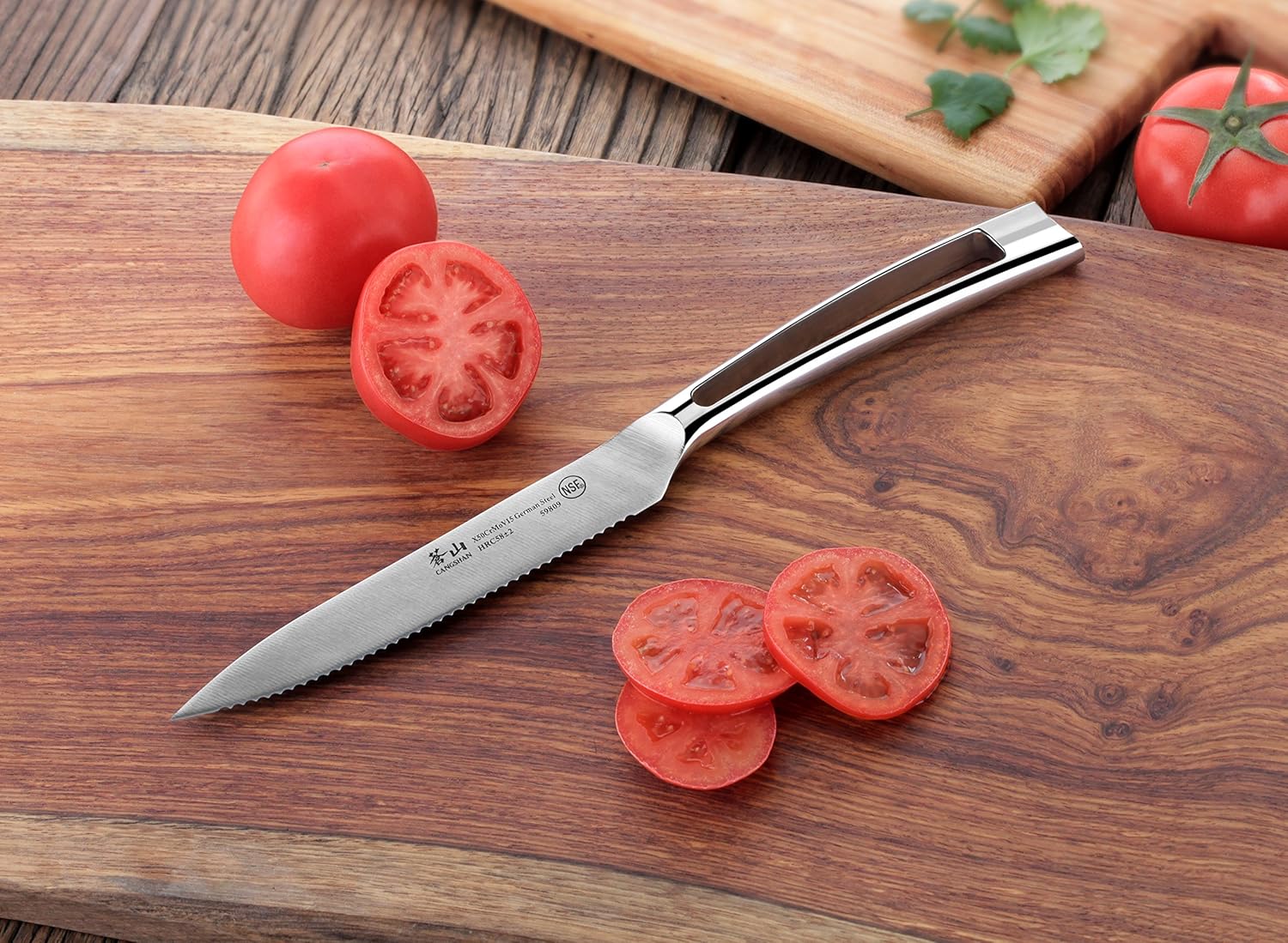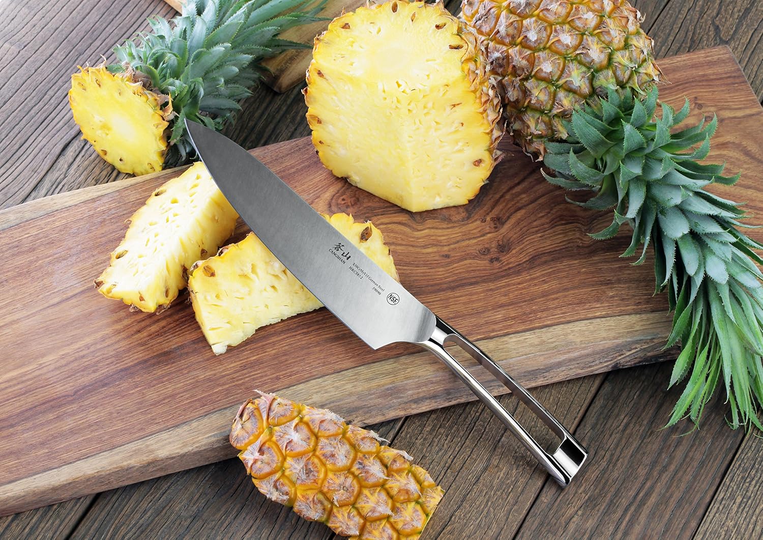 - Hand crafted full tang knives forged from fine grained, X50CrMoV15 German Steel for incredible durability, stain resistance and exceptional edge retention.