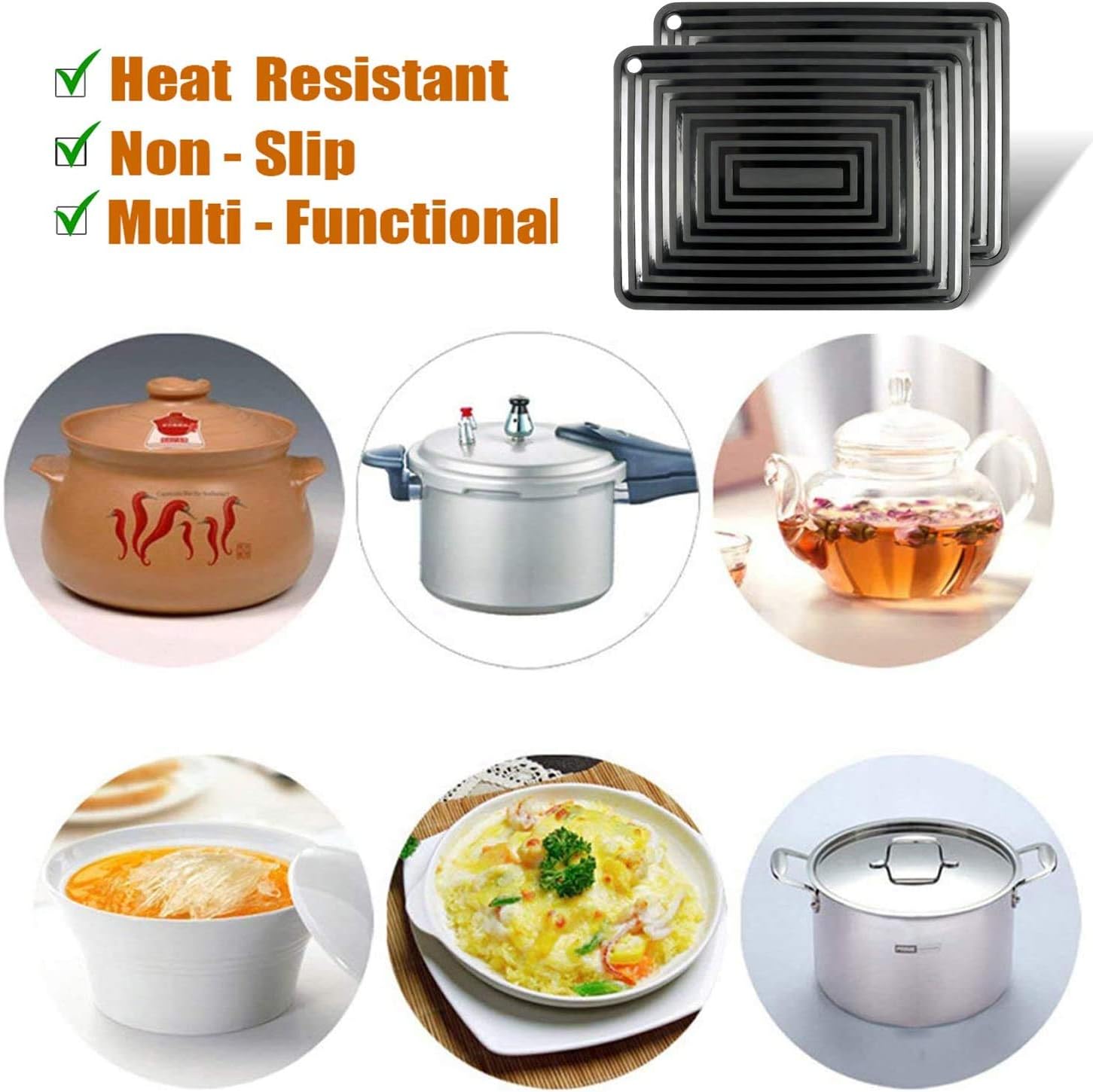 - ☑️【Heat Resistant up to 464°F】 Heat resistant, withstands temperatures from -30℃ to 240℃ (-22°F to 464°F ),Use it as a pot holder, trivet, jar opener, spoon rest or anywhere you need extra grip or exteme heat.