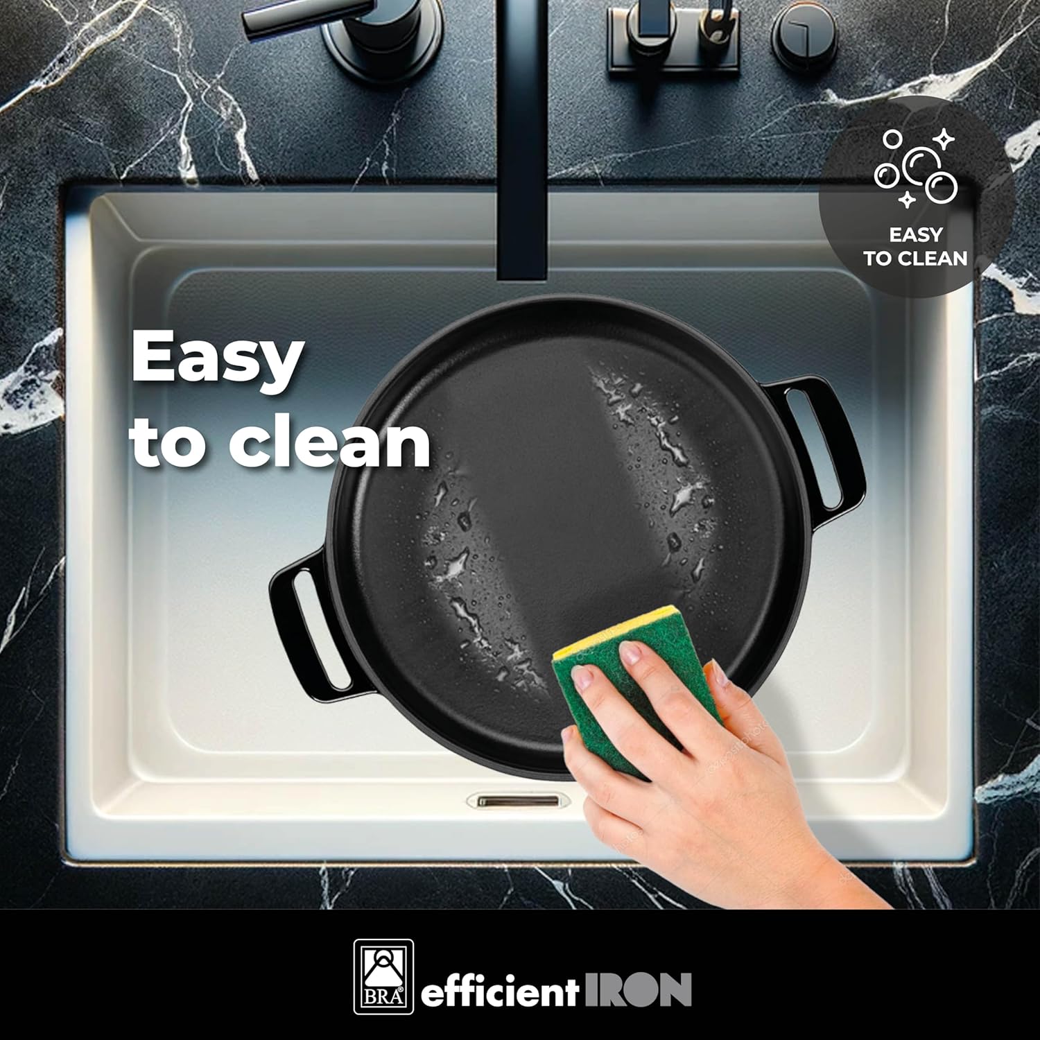 - DURABLE & FUNCTIONAL DESIGN: Made of 3.8 mm enamelled cast iron, the Efficient Iron collection has an increased resistance to deformation, rust and deterioration. The removable handles offer security and secure grip.