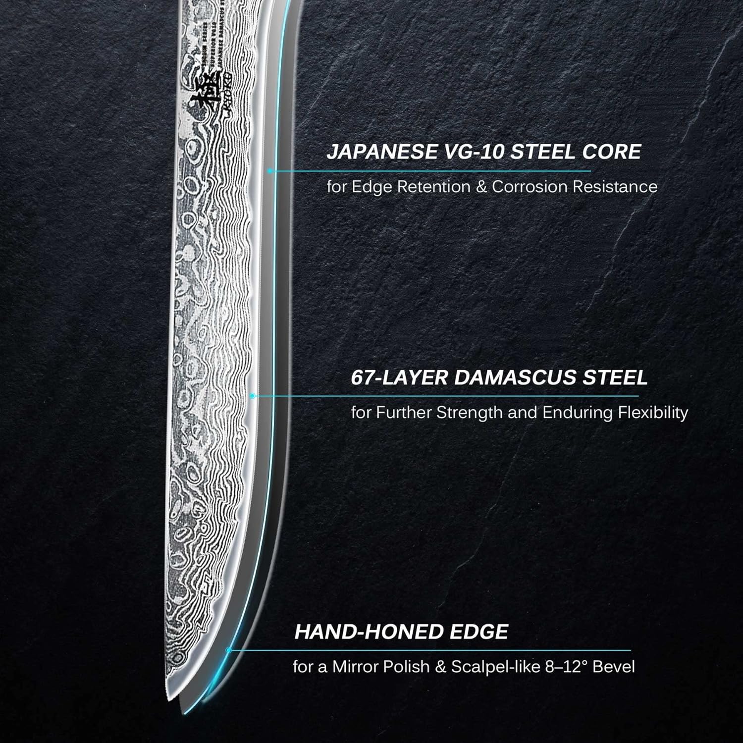 - SUPERIOR SHARPNESS - Ruthlessly sharp scalpel-like edge is handcrafted by seasoned artisans to a mirror polish at 8-12° double side using the traditional 3-step Honbazuke method; Nitrogen cooled for ultimate hardness, flexibility and corrosion resistance performance