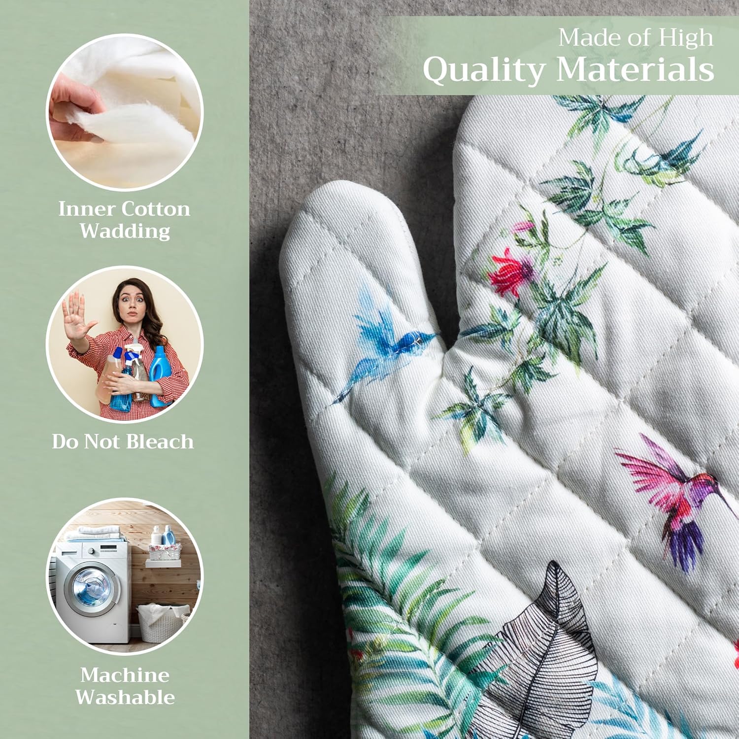 Maison d' Hermine Oven Gloves 100% Cotton Oven Mitt 7" x 13" with Loop Heat Resistant, BBQ, Cooking Gloves, Baking, Grilling, Kitchen, Handling Hot Pans Spring/Summer (Pack of 1, Tropiques)