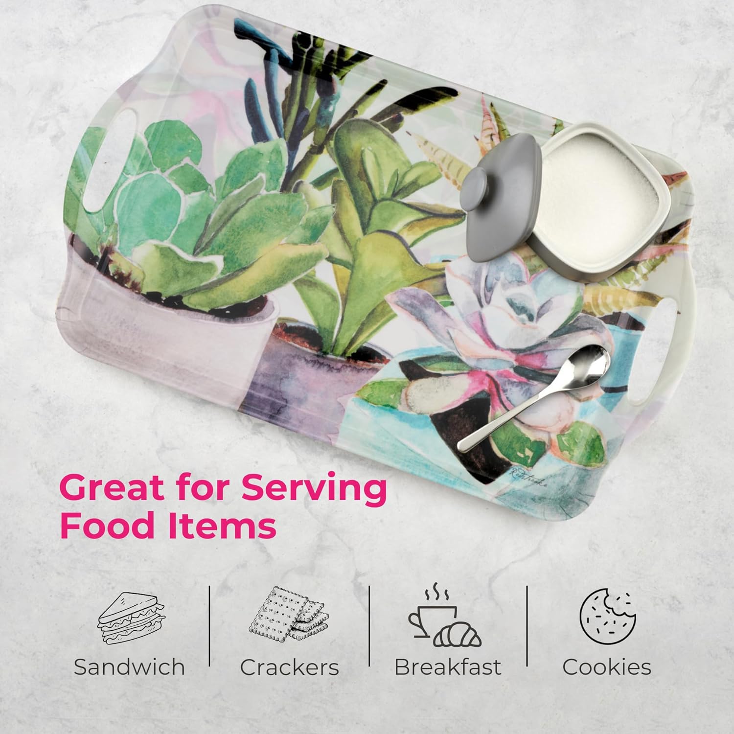 Pimpernel Succulents Large Handled Tray - 18.9" x 11.6" Melamine Serveware with Botanical Design - Dishwasher-Safe Decorative Breakfast & Coffee Tray for Hosting & Everyday Use
