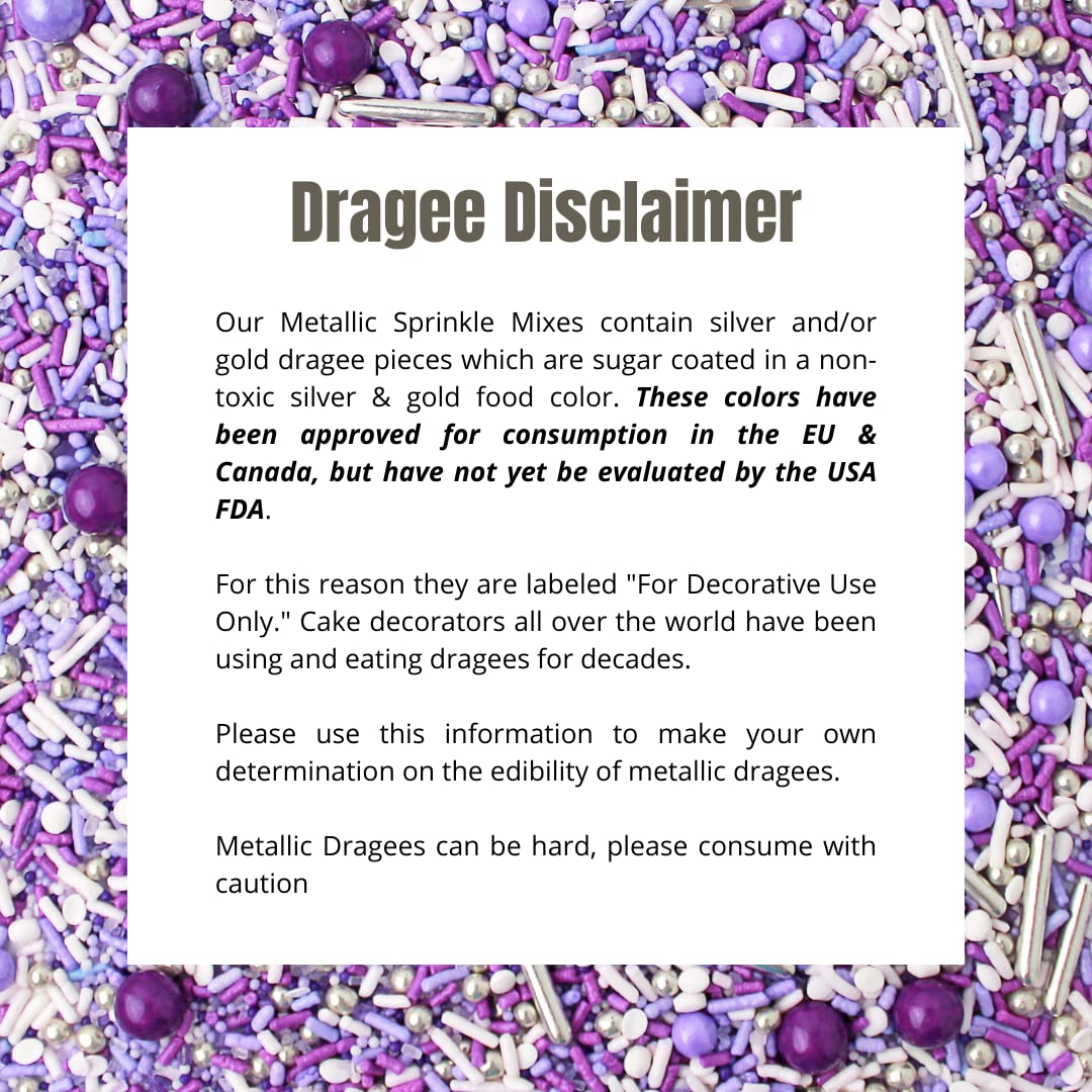 - Metallic Dragees Disclaimer: Silver and gold dragees are commonly used by cake decorators worldwide. While approved for consumption in some regions, they are traditionally labeled as “For Decorative Use Only” in the U.S. Please use discretion when adding them to your creations