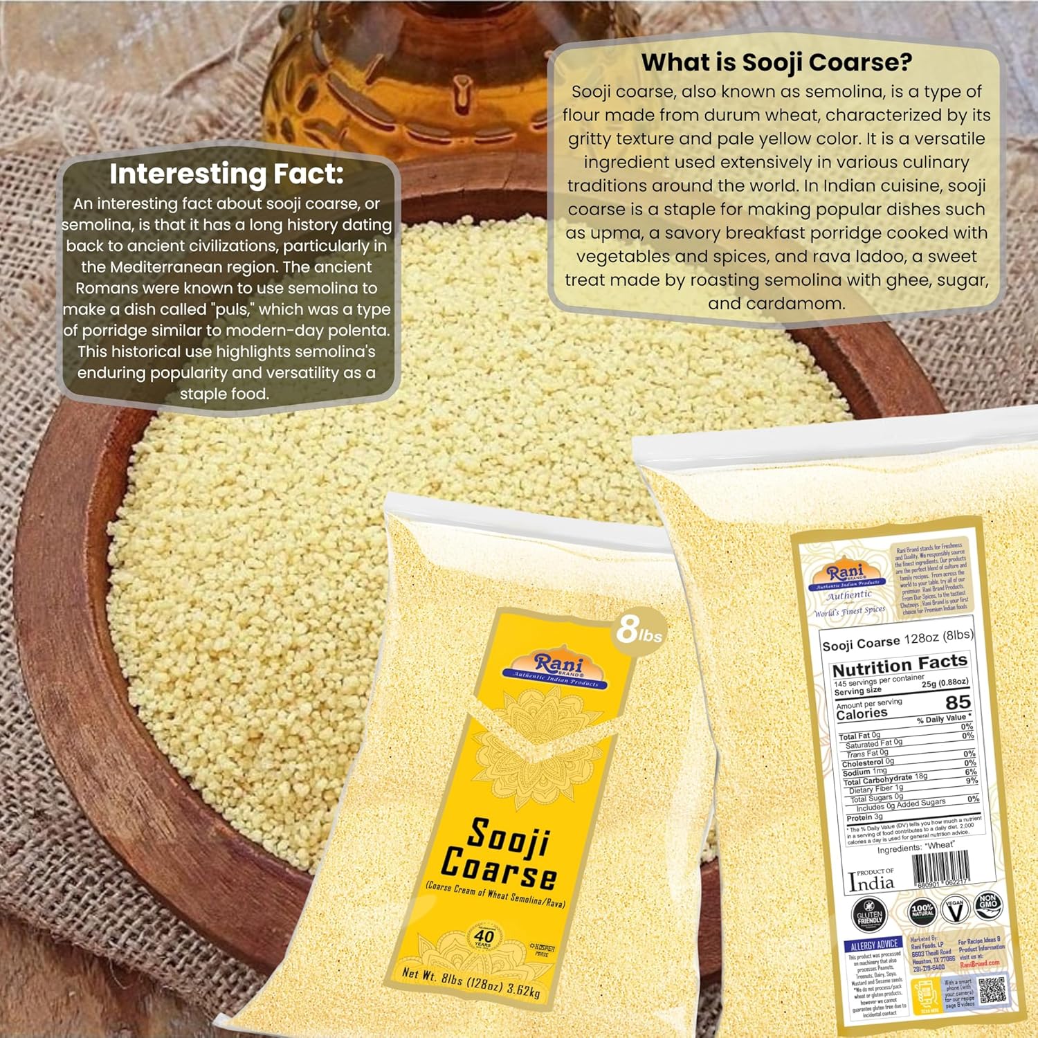 - You'll LOVE our Sooji Coarse (Farina, Suji, Rava, Rawa, Semolina) Flour by Rani Brand--Here's Why: