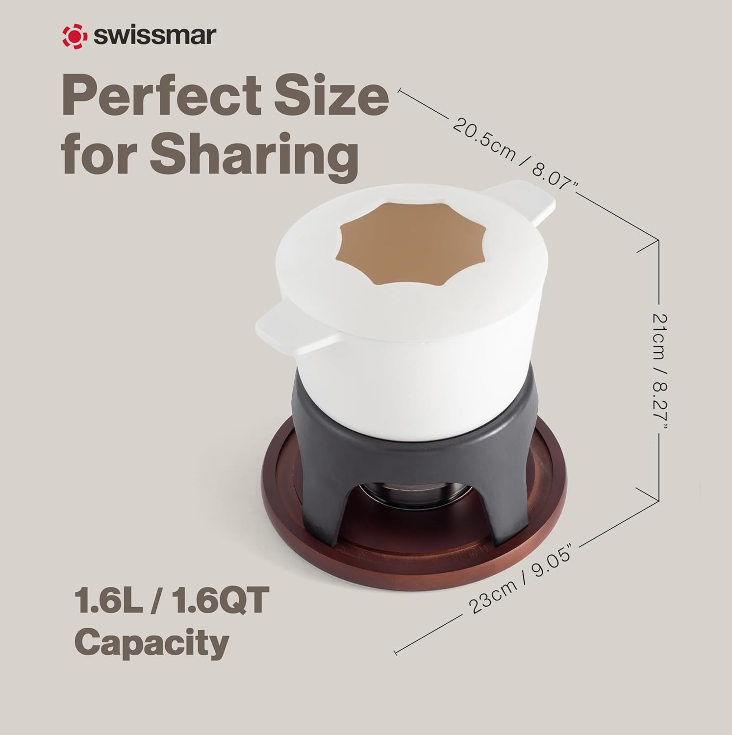 Swissmar Sierra Cast Iron Fondue Set, 1.6 Quart / 1.6 Liter – Perfect for Meat, Cheese, & Chocolate Fondues – Ideal for Family Bonding & Hosting Gifts - 12-Pieces, Matte White