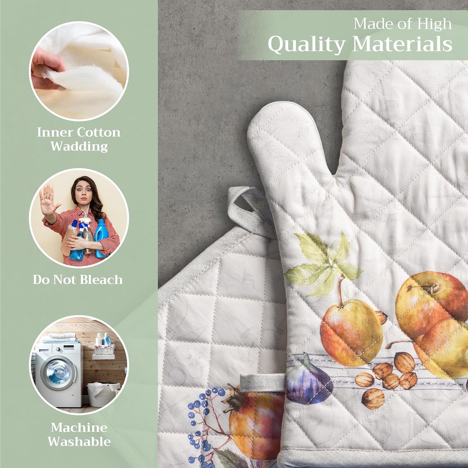 - Premium Quality: Crafted from quilted 100% cotton, this heat resistant oven mitt and pot holder set offers comfort, flexibility, and protection from hot cookware. Ideal cotton oven mitts for daily kitchen use and cooking safety