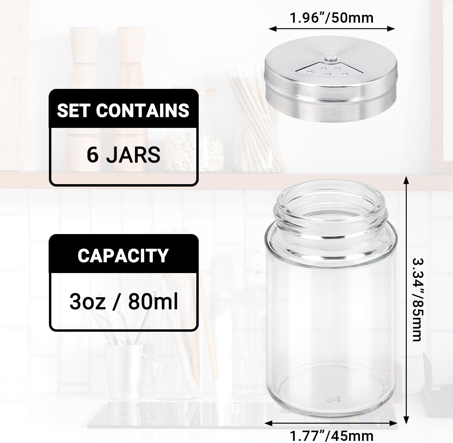 Segarty Spice Jars, 6 Pack 3 oz Spice Bottles with Shaker Lids, Glass Empty Storage Containers with Adjustable Stainless Steel Flow Top for Your Regularly Used Spices