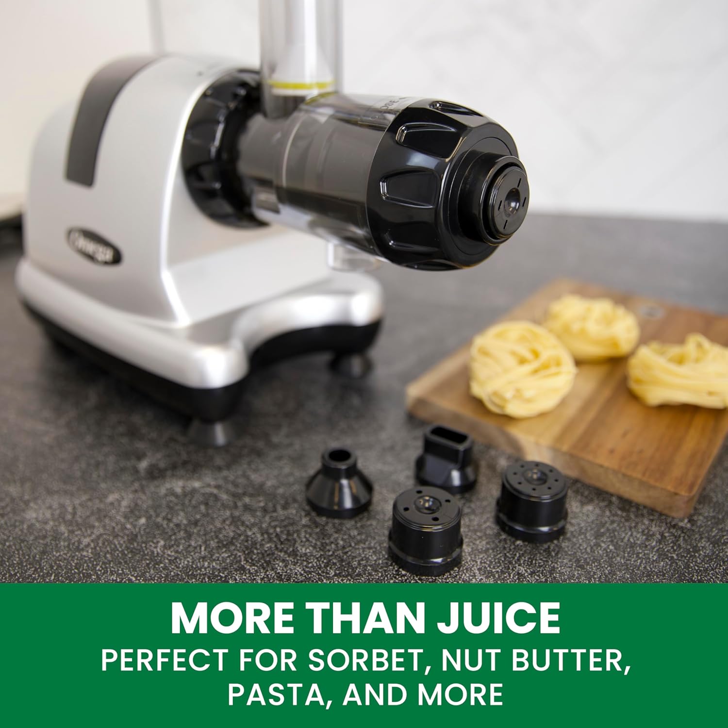 - Versatile Kitchen Tool: Turn nuts into nut butter, extrude pasta, grind coffee and spices, mince herbs and garlic, make baby food and frozen desserts, and quickly whip up soy milk with the help of this versatile electric juicer and nutrition system