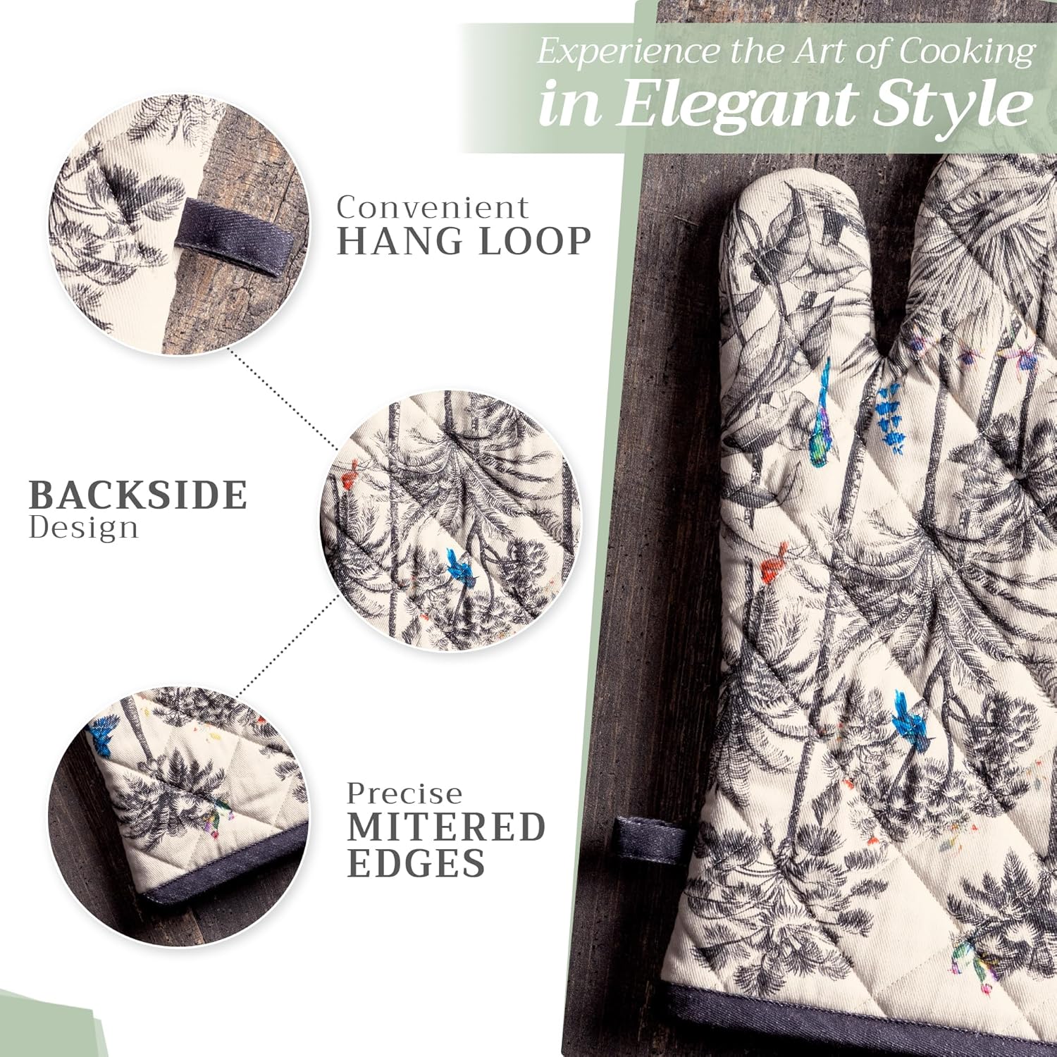Maison d' Hermine 100% Cotton Oven Mitt & Pot Holder Set (7.5"x13" & 8"x8") Heat Resistant BBQ Cooking Gloves with Loop, Baking, Grilling, Kitchen, Handling Hot Pans (Amazonia)