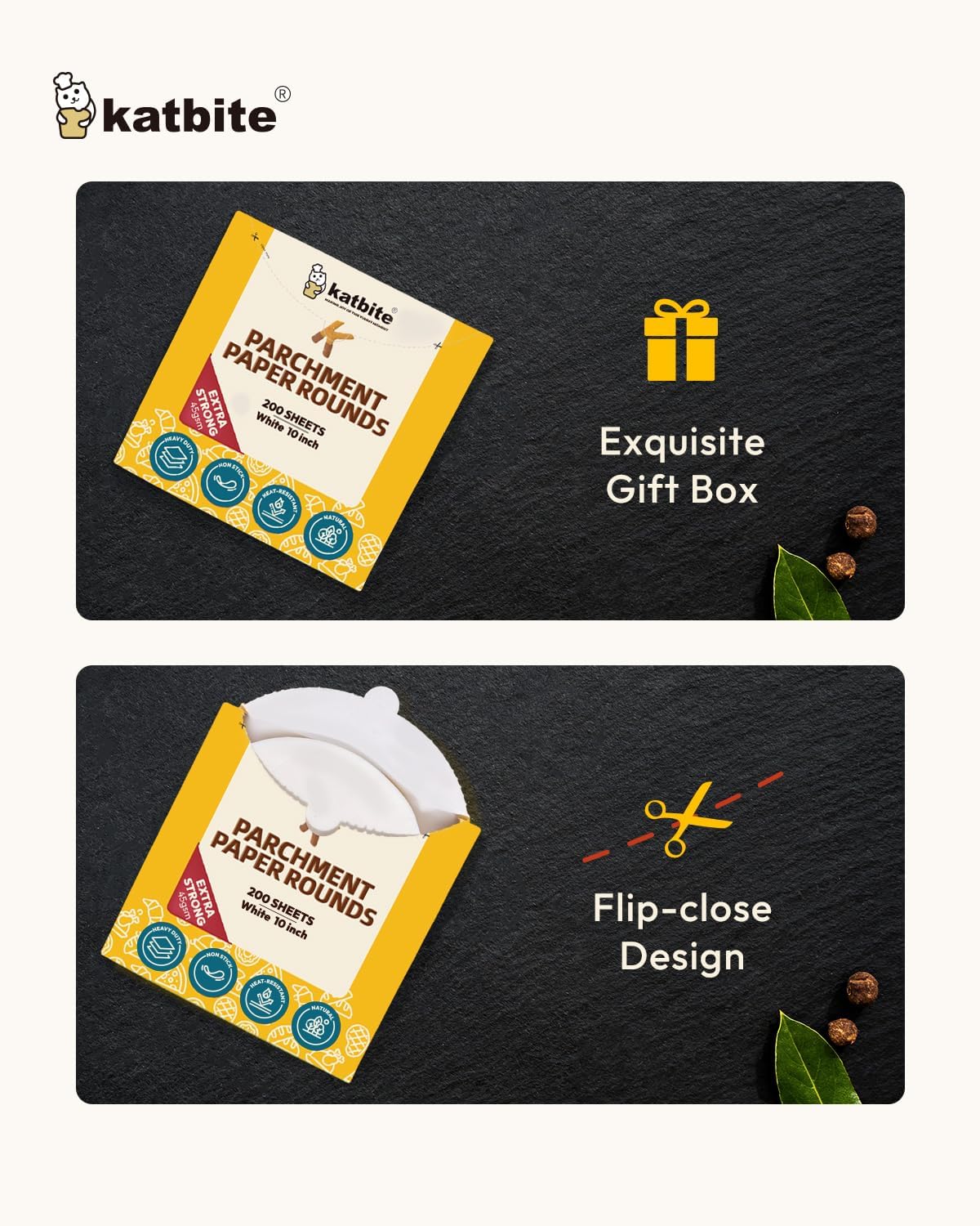 - NON-STICK & EASY TO CLEAN - Do you love kitchen but hate cleaning up? Katbite parchment paper 10 inch round makes it possible and even works great! Ours are designed with two-side food grade silicone coating. Your cake will not stick to the parchment sheet. Finish baking, you can easily remove the paper and throw it away.