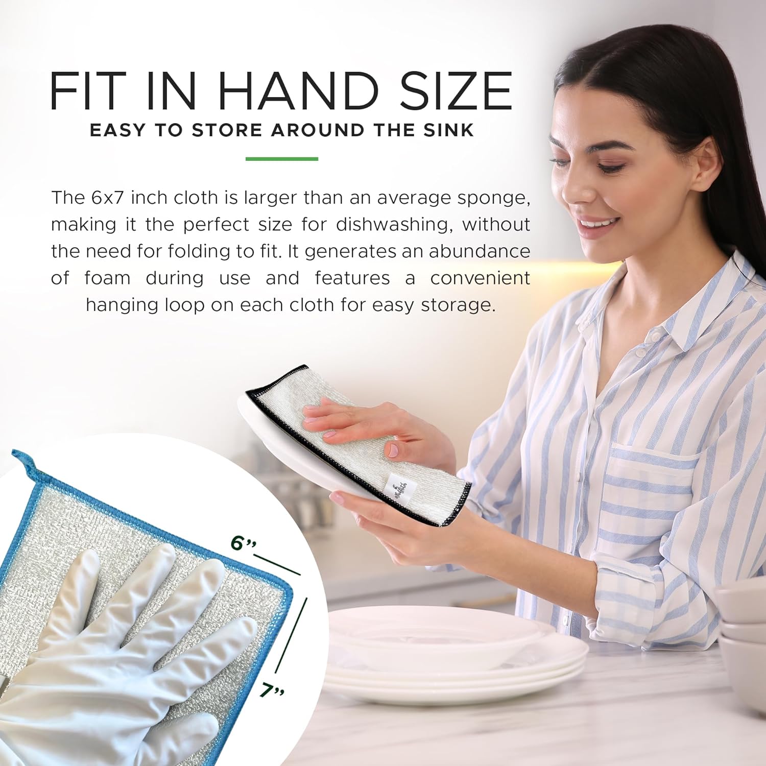 - QUALITY COUNTS: Our Whiffkitch Dish Cloths & Cleaning Cloths are not just absorbent; they're also reusable and long lasting. At 6x7 inches, these 2-ply thick reusable, quick-drying, hygienic, and durable kitchen dishcloths set the standard for cleanliness and sustainability in any kitchen, making them essential for washing dishes and more.