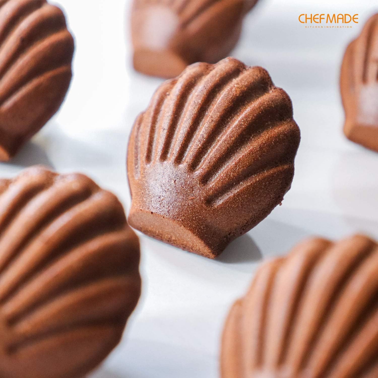 CHEFMADE Madeleine Mold Cake Pan, 12-Cavity Non-Stick Scallop Madeline Bakeware for Oven Baking (Champagne Gold)
