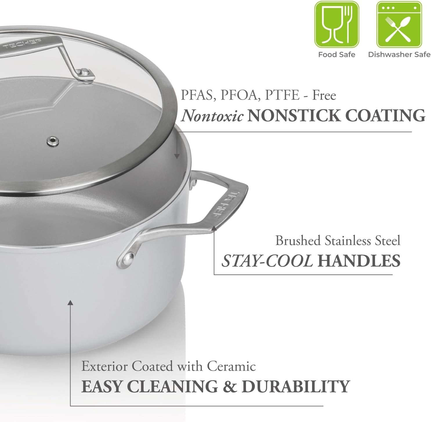 - High-Performance Nontoxic and Nonstick Ceramic Coating - Toxin-Free "CERAMICA" coating is free of PFOA, PTFE, PFAS, Cadmium, and Lead