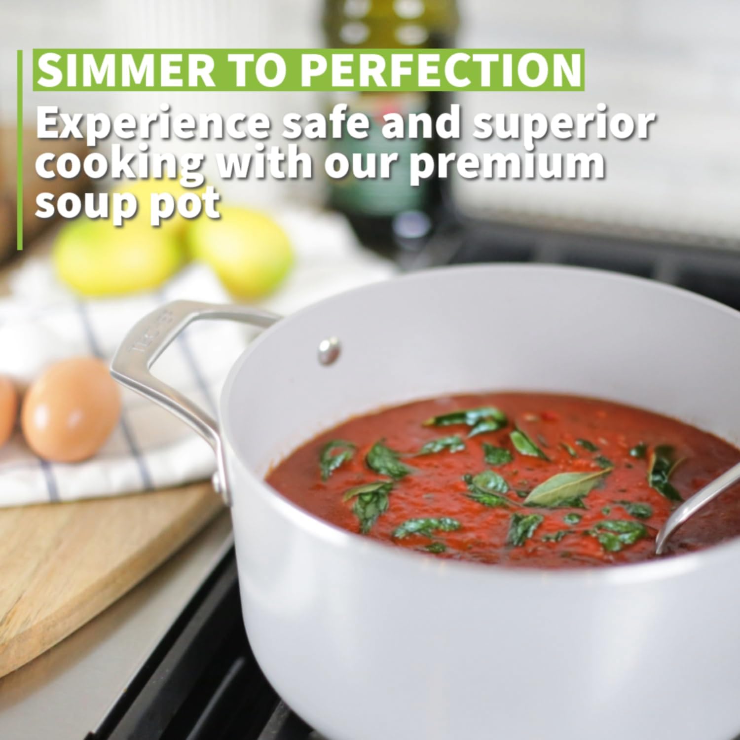 TECHEF - CeraTerra Collection, 5-quart Ceramic Nonstick Soup Pot with Glass Lid (PFAS, PTFE, and PFOA Free), Made in Korea (5-quart)