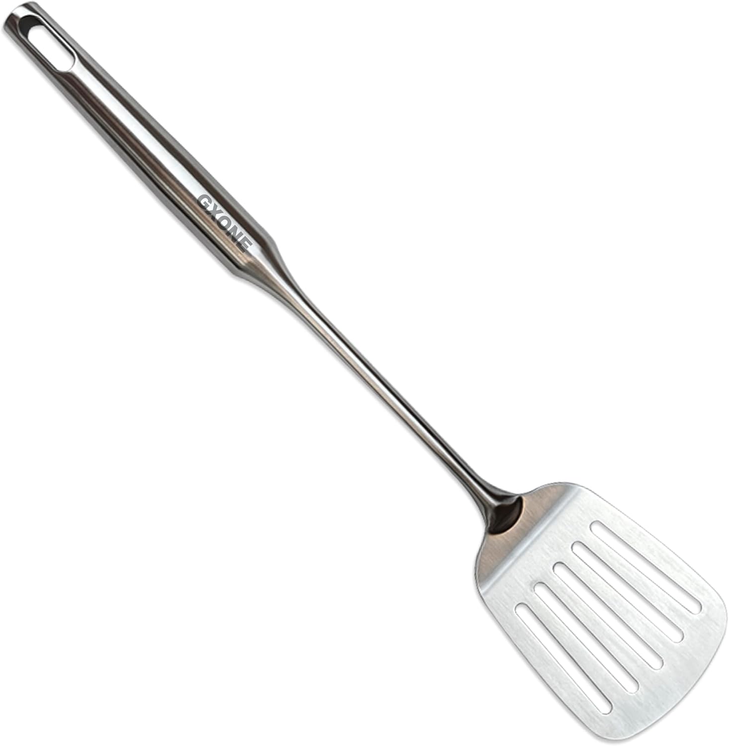 - ❀ [REASONABLE SIZE]:14.9-inch in length,3.1-inch in width,Thick feeling mean our stainless steel Slotted Turner greater control in the kitchen.