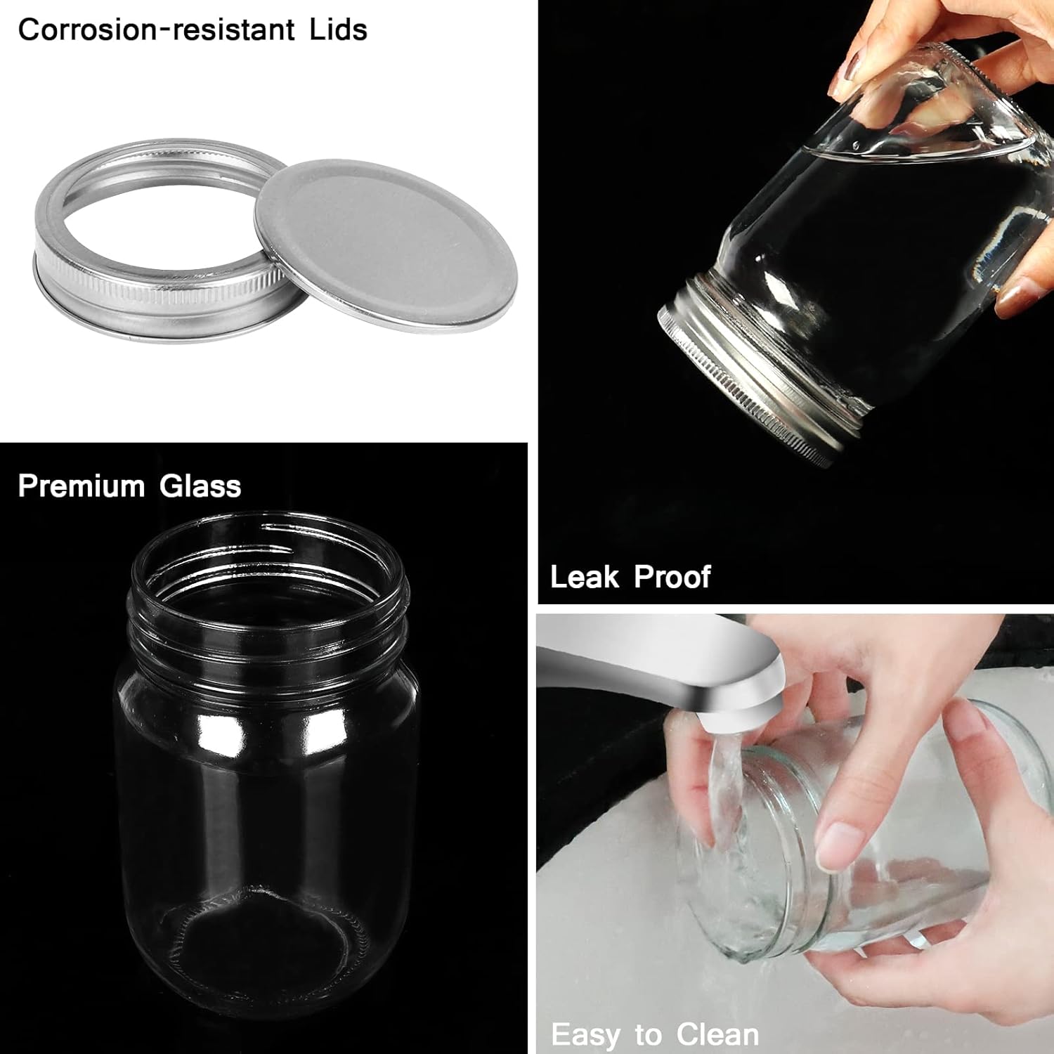 - High Quality Jars: These jars are made of high quality thick glass, corrosion resistant lids, durable and reusable; Visible clear body, can clearly distinguish what is inside