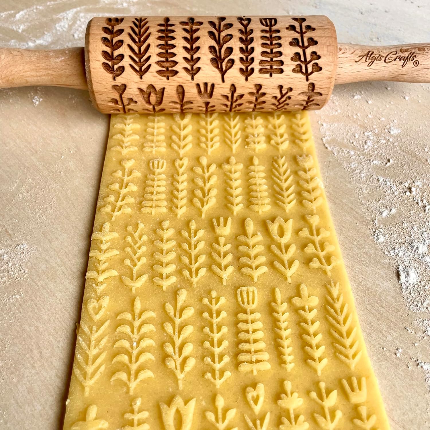 GARDEN BLOSSOMS 3 Small Size Embossed Rolling Pin Set. Wooden Laser Engraved Embossing Dough Roller for Embossed Cookies Gift for Birthday, Easter by Algis Crafts