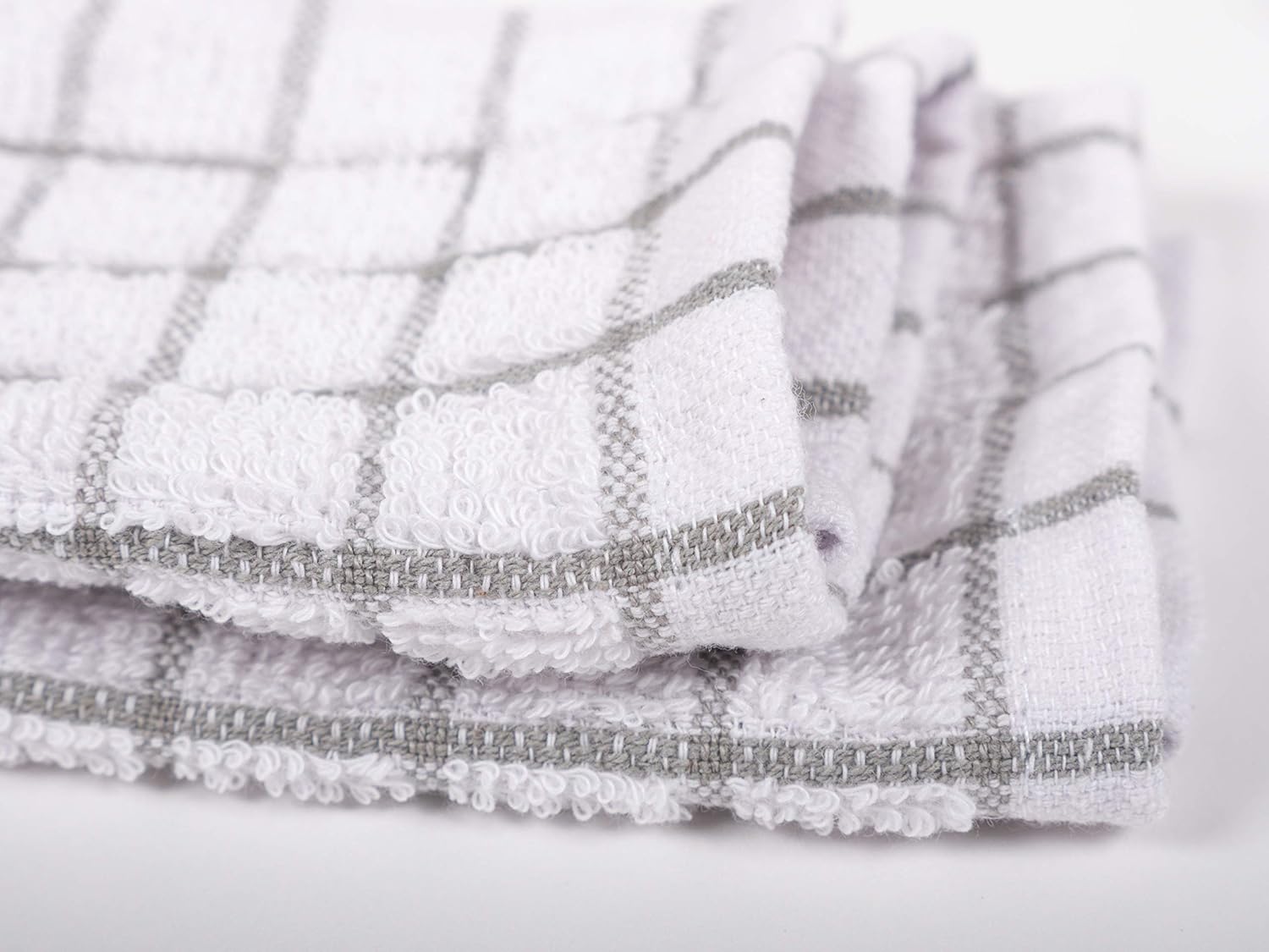 KAF Home Pantry 100% Cotton Checkered Grid Dish Cloths | Set of 6, 12 x 12 Inches | Absorbent and Machine Washable | Perfect for Cleaning Counters, and Any Household Spills - Gray