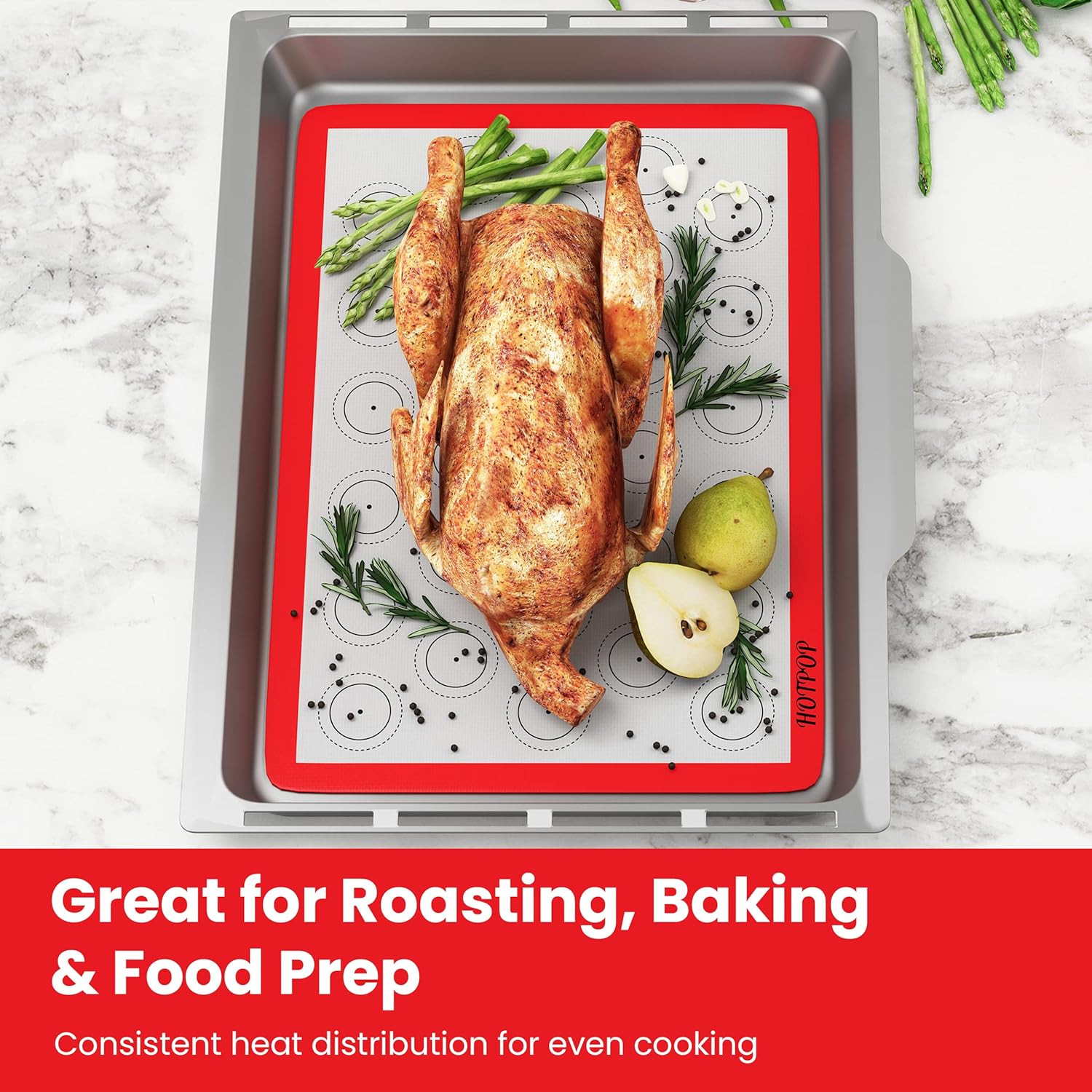 HOTPOP 2-Pack Silicone Baking Sheet Set - No-Stick Cookie Sheets for Baking with Outlined Silicone Mats for Macarons, Pastries, Buns, Bread - 16.5"x11.6" Half, 11.5"x8.5" Quarter Sizes - 0.75mm Thick