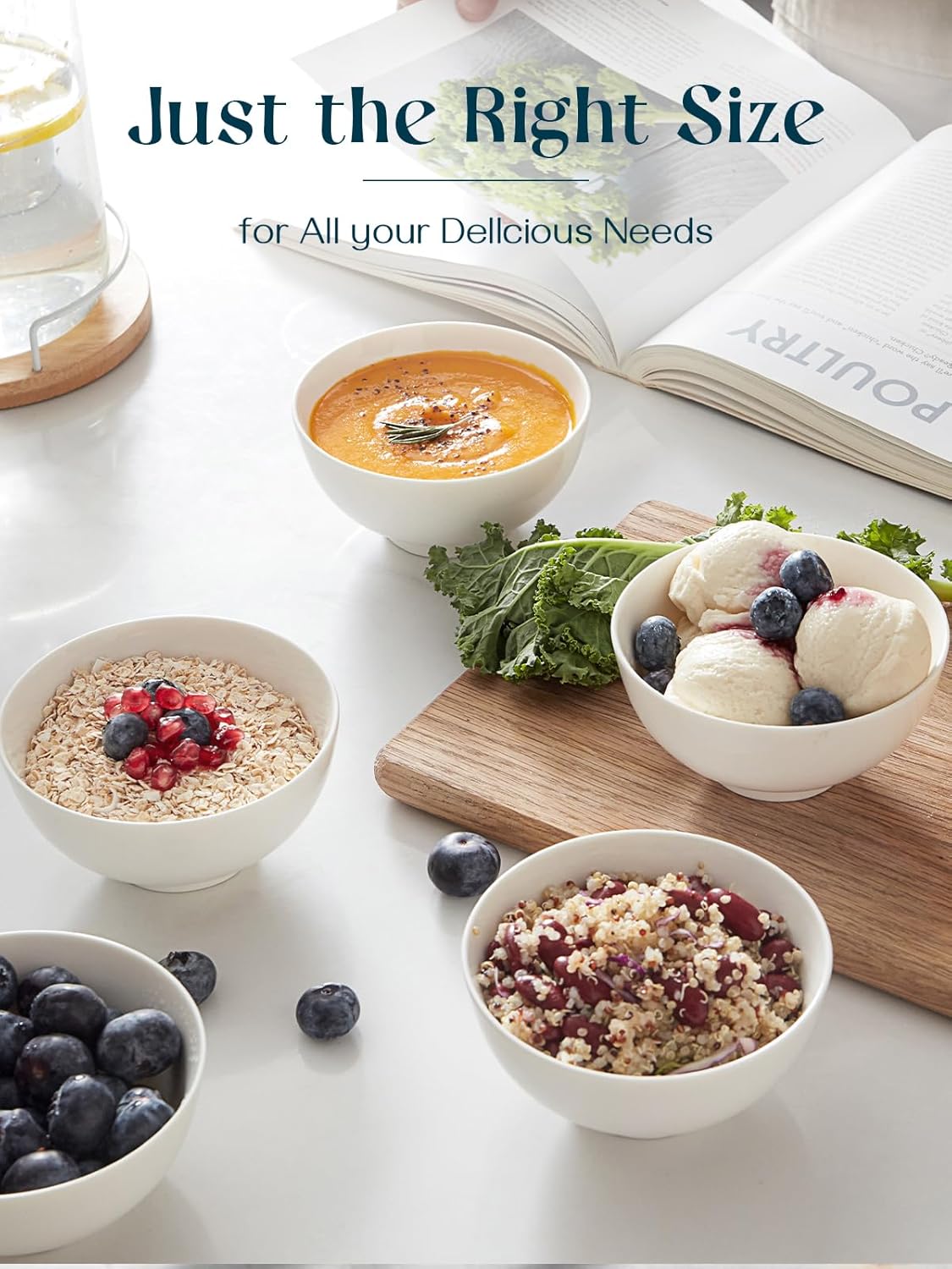 - Versatile Small Bowls: Cute 10 oz (maximum capacity) bowls set are useful in serving and cooking preparation. Perfect for ice cream, dessert, rice, snack, nut, side dish, appetizer, sauce, yogurt, little soup, or cereal.