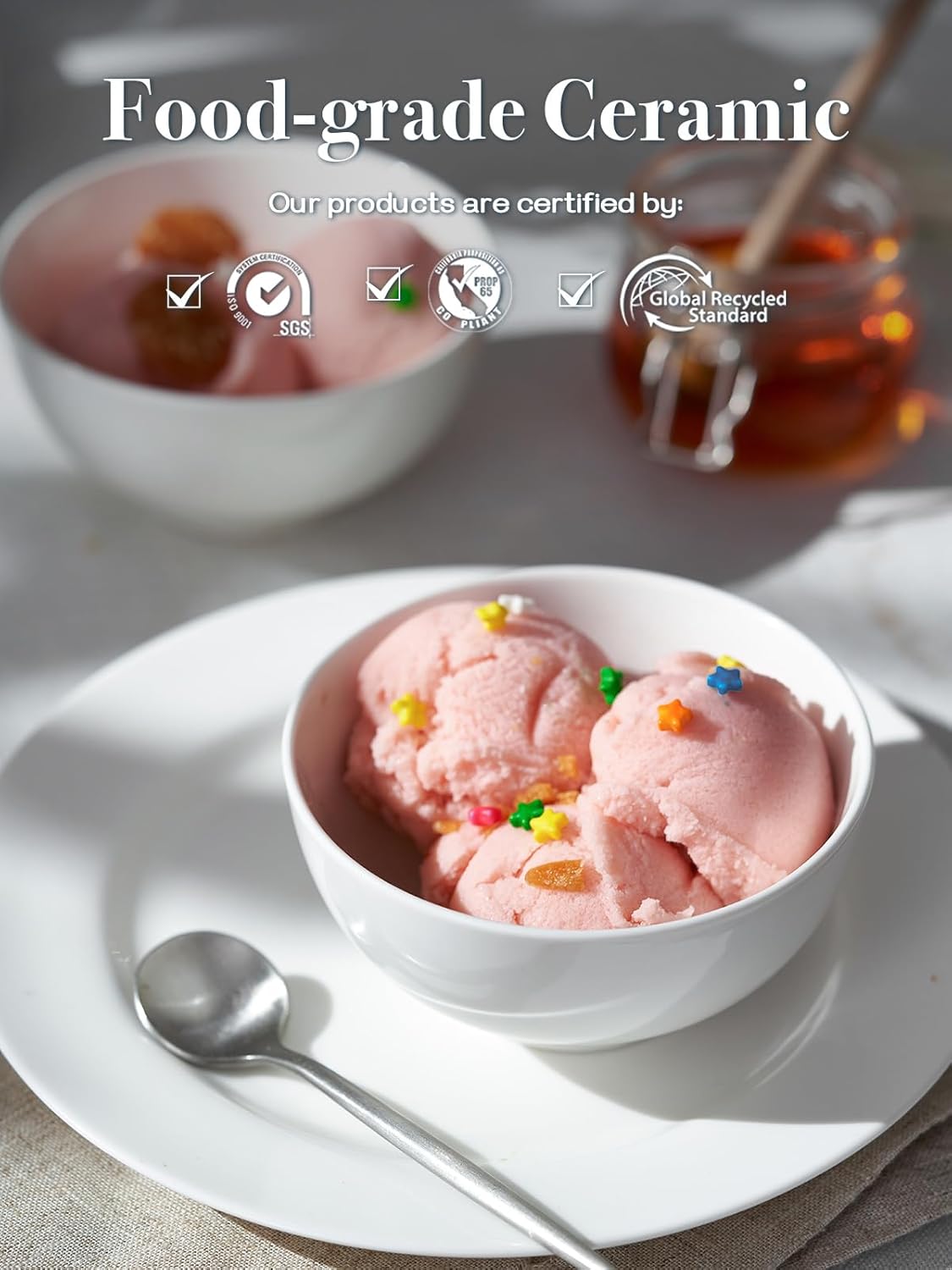 - Food Contact Safe: Different from disposable and plastic bowls, every DOWAN ceramic bowl is made of high-quality porcelain and undergoes two times high-temperature firings at 1280 degrees. For that there are no harmful substances leaching into your food.