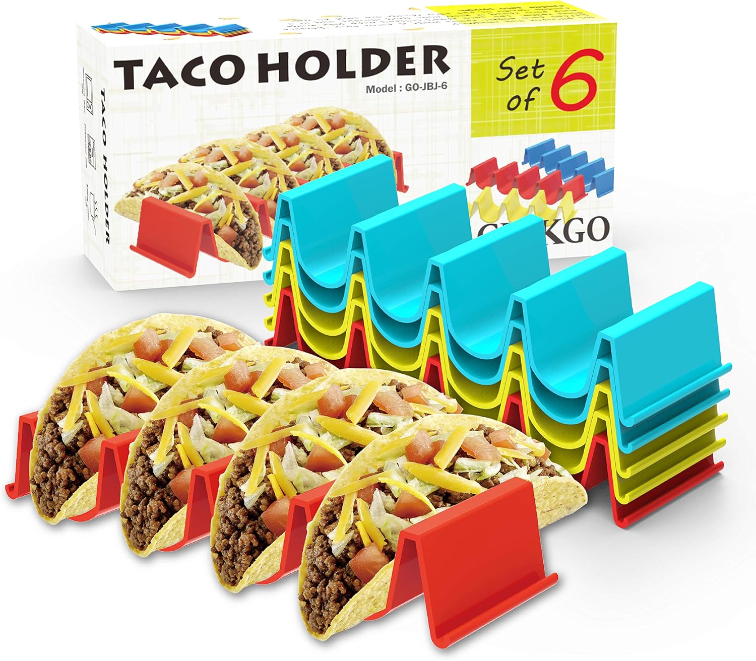 Ginkgo Taco Holder Stand Set of 6, Colorful Taco Plates Tray Rack for Holiday Gift, Party, Christmas and New Year, Taco Tuesday Decorations
