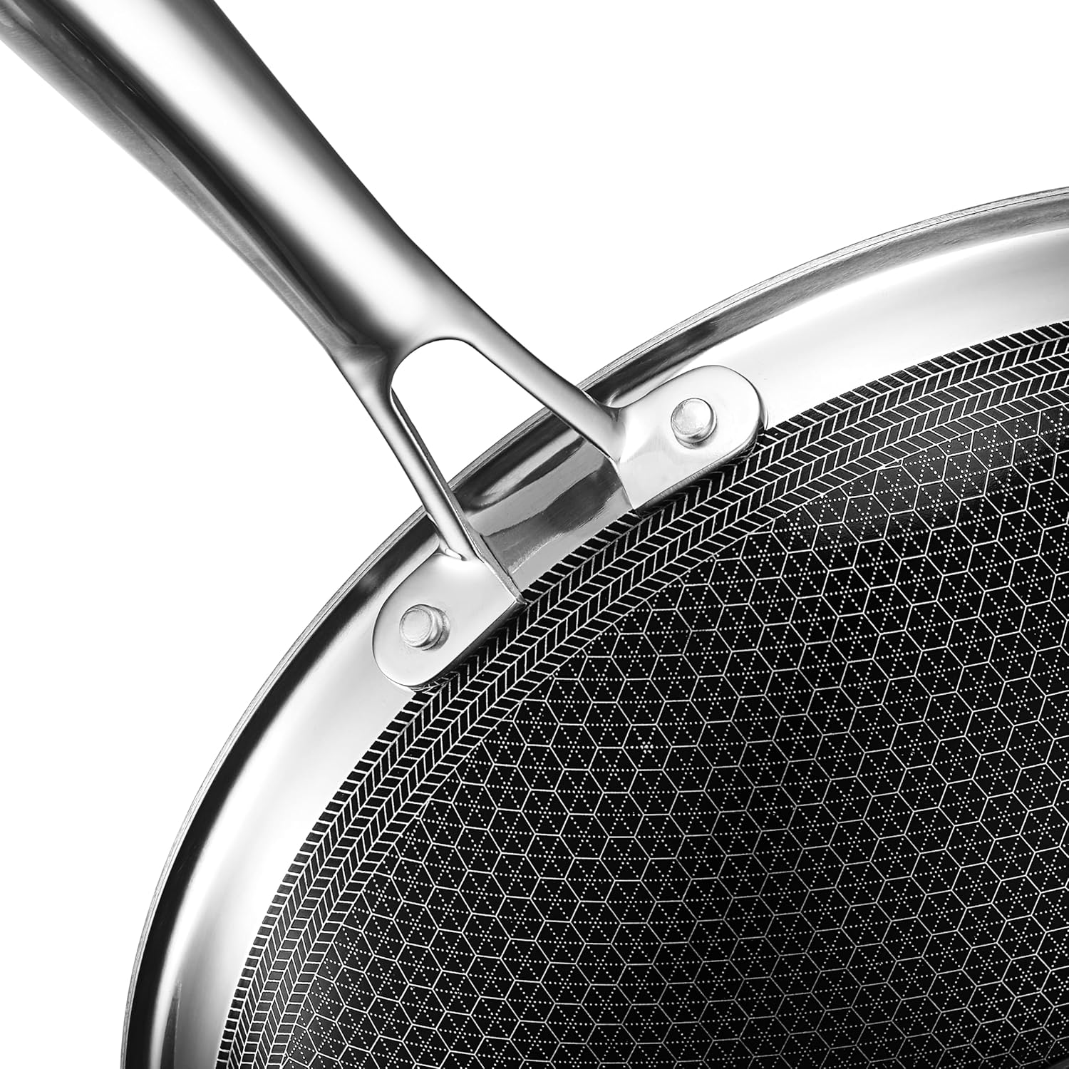 - HexClad’s patented Hybrid technology features a laser-etched hexagonal nonstick surface that combines both stainless-steel and our TerraBond ceramic coating for the ultimate sear and easy cleaning.