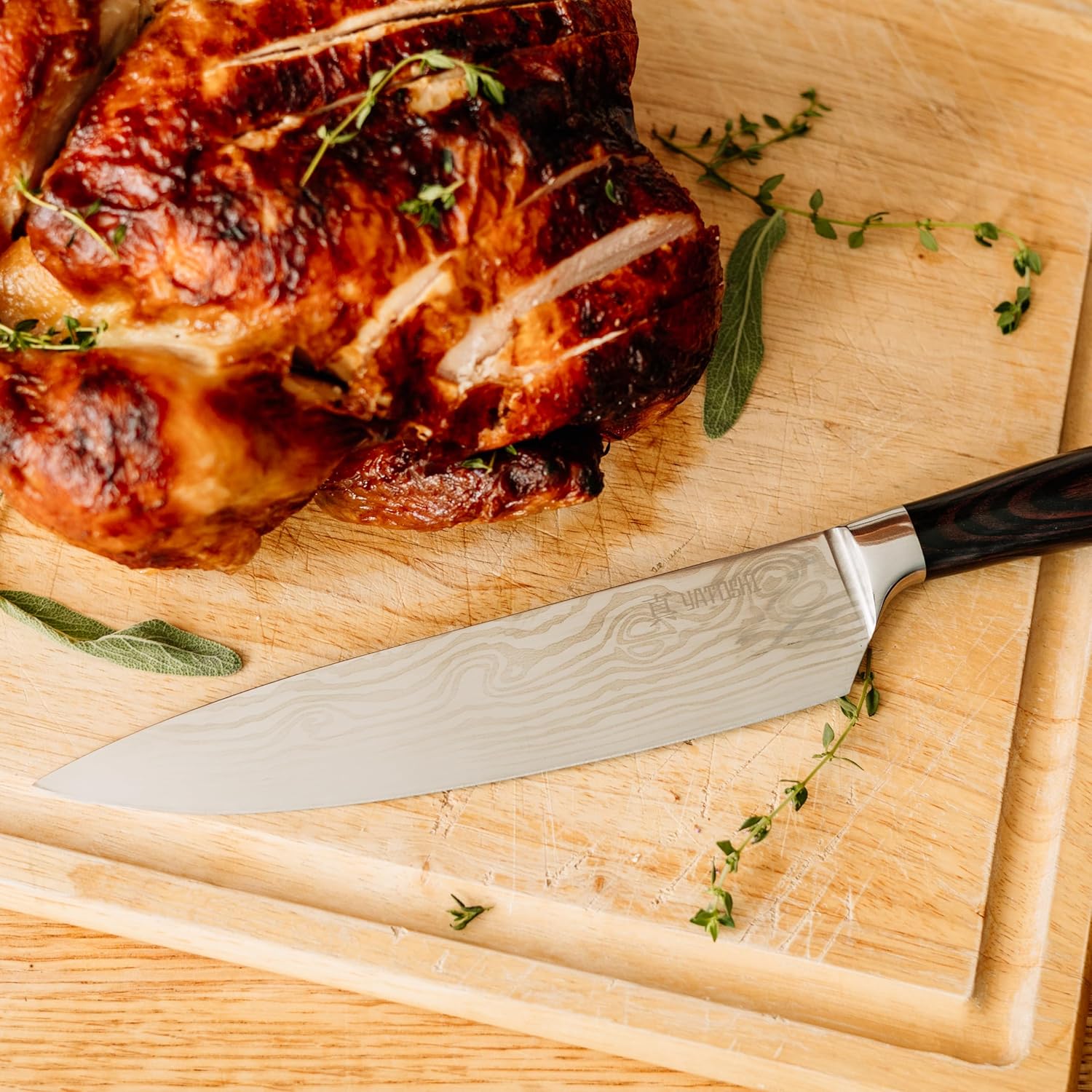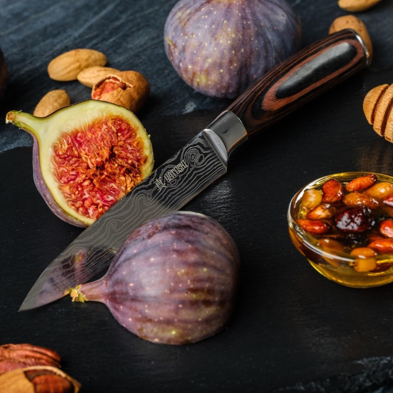 - Set Includes: 1x 8” Chef Knife, 1x 7” Santoku Knife, 1x 5” Utility Knife, 1x 5” Santoku Knife, 1x 3” Paring Knife