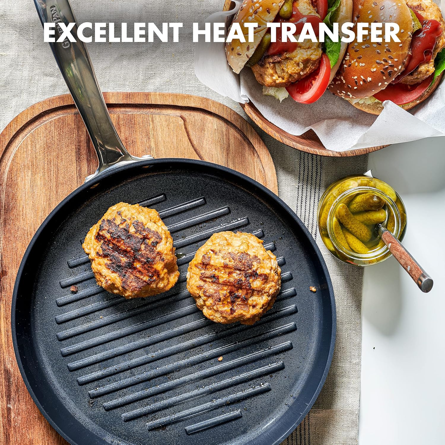 GreenPan Chatham Black Prime Midnight Hard Anodized Healthy Ceramic Nonstick, 11" Grill Pan, PFAS-Free, Dishwasher Safe, Oven Safe, Black