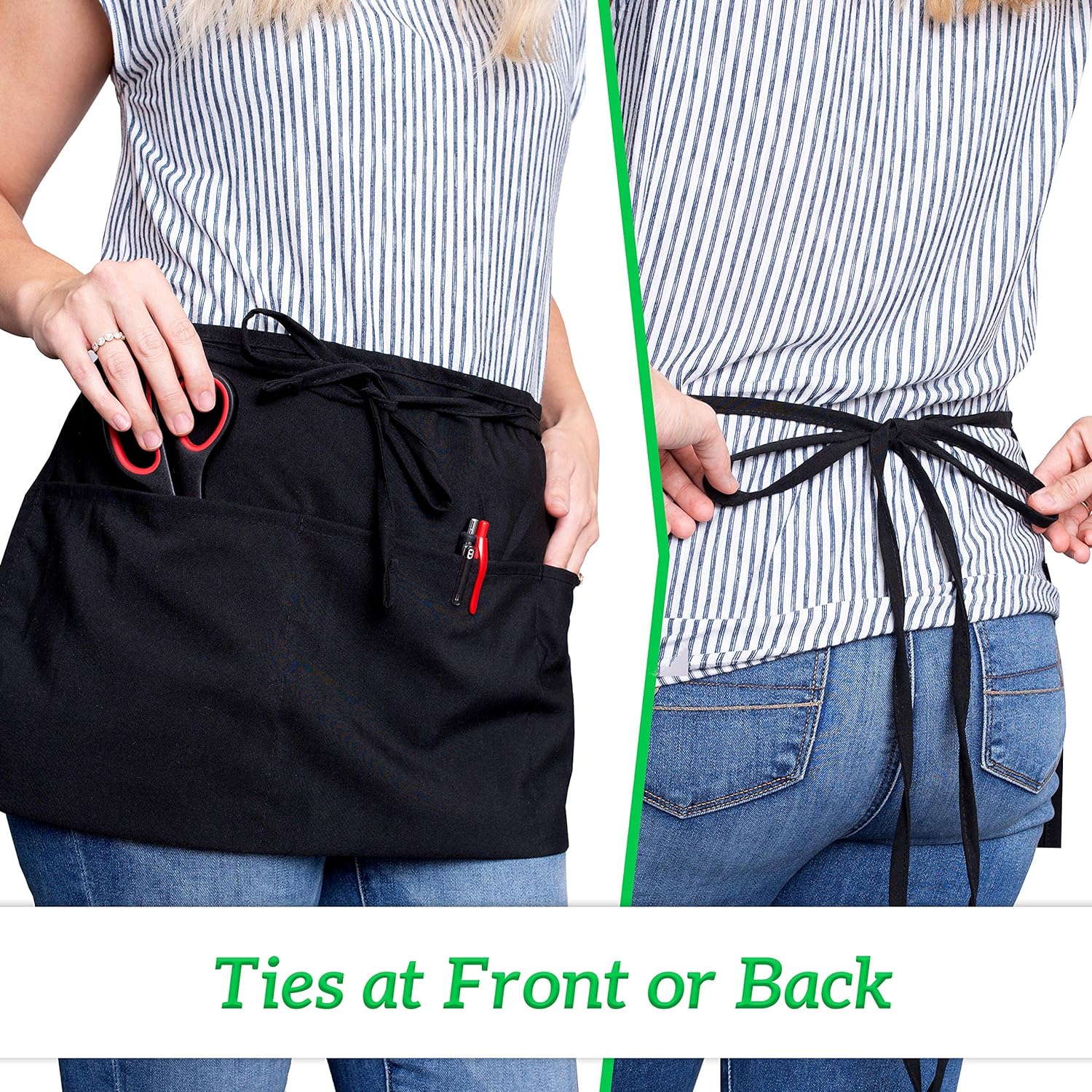 - Commercial Grade: black aprons for servers are perfect for servers in Restaurants, Bars, Cafes, or at Home in the kitchen, garden, or craft table. These comfortable, durable, light weight waist aprons comes with 3 pockets and you can wear them for all your serving needs.