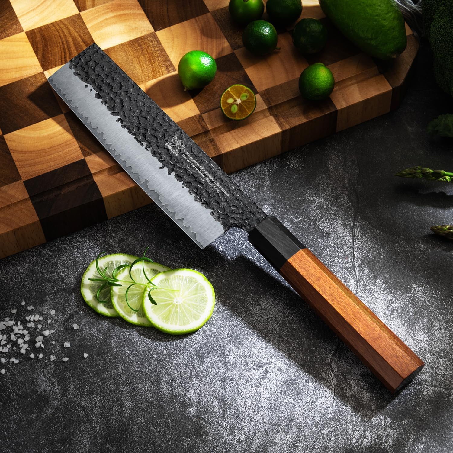 - FAMCÜTE Expertise - Our kitchen cleaver knife are made from 5 layers of 9CR18MOV steel, combining traditional forging techniques with advanced technology. Each sharp knife undergoes a meticulous 60-day production process, including precise quenching, vacuum nitriding, and enhanced oxidation-resistant anti-rust technology, ensuring every cut remains sharp and durable.